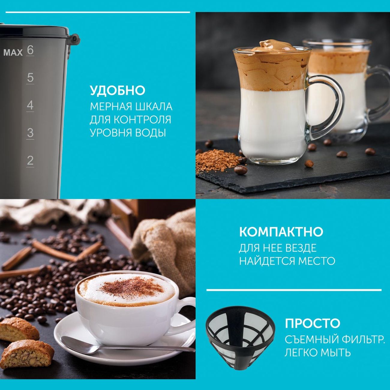 Прикольная кофеварка. Очень компактная, занимает совсем немного места. Зато теперь с утра мы с мужем наслаждаемся хорошим кофе. Ароматы витают просто обалденные, и настроение реально повышается на весь день. Кувшинчик небольшой, но нам по размеру идеален. По паре чашечек с утра вполне хватает нам, чтобы зарядиться бодростью. Кофе варит быстро, так что, пока нарезаем бутерброды, напиток как раз готовится. В уходе тоже довольно неприхотлива, если помыть все емкости сразу – так ничего не присыхает, идеально чистая.