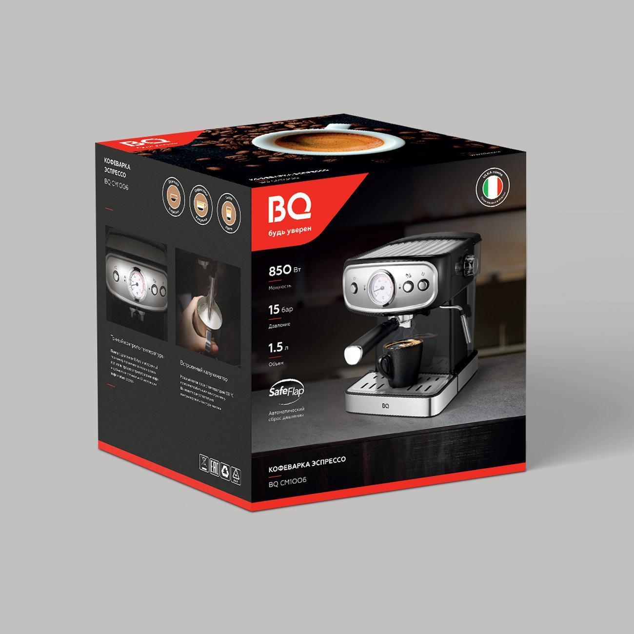 Кофеварка BQ CM1006 объединяет в себе профессиональное приготовление кофе, простоту в обращении и стильный дизайн. С ней вы легко приготовите ваш любимый эспрессо, капучино или латте.Сочетание в кофеварке мощности 850 Вт и итальянской помпы ULKA создающей давление в 15 Бар передадут весь аромат кофе.Кофеварка оснащена встроенным капучинатором, благодаря которому вы приготовите вкусный капучино или латте с густой молочной пенкой.Корпус кофеварки изготовлен из нержавеющей стали и термостойкого пластика и защищен от перегрева.Наслаждайтесь вкусным кофе каждый день вместе с кофеваркой BQ CM1006
