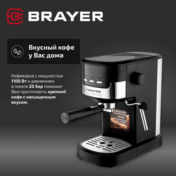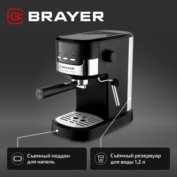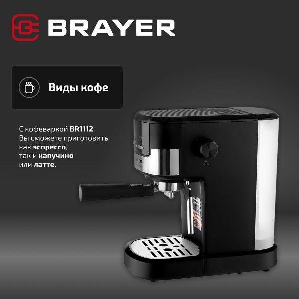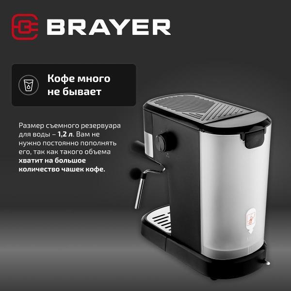 Кофеварка рожкового типа Brayer BR1112 оснащена автоматическим устройством для приготовления молочной пены для приготовления эспрессо, капучино и латте. Модель выполнена в черном цвете и оснащена резервуаром для воды объемом 1,5 л.
