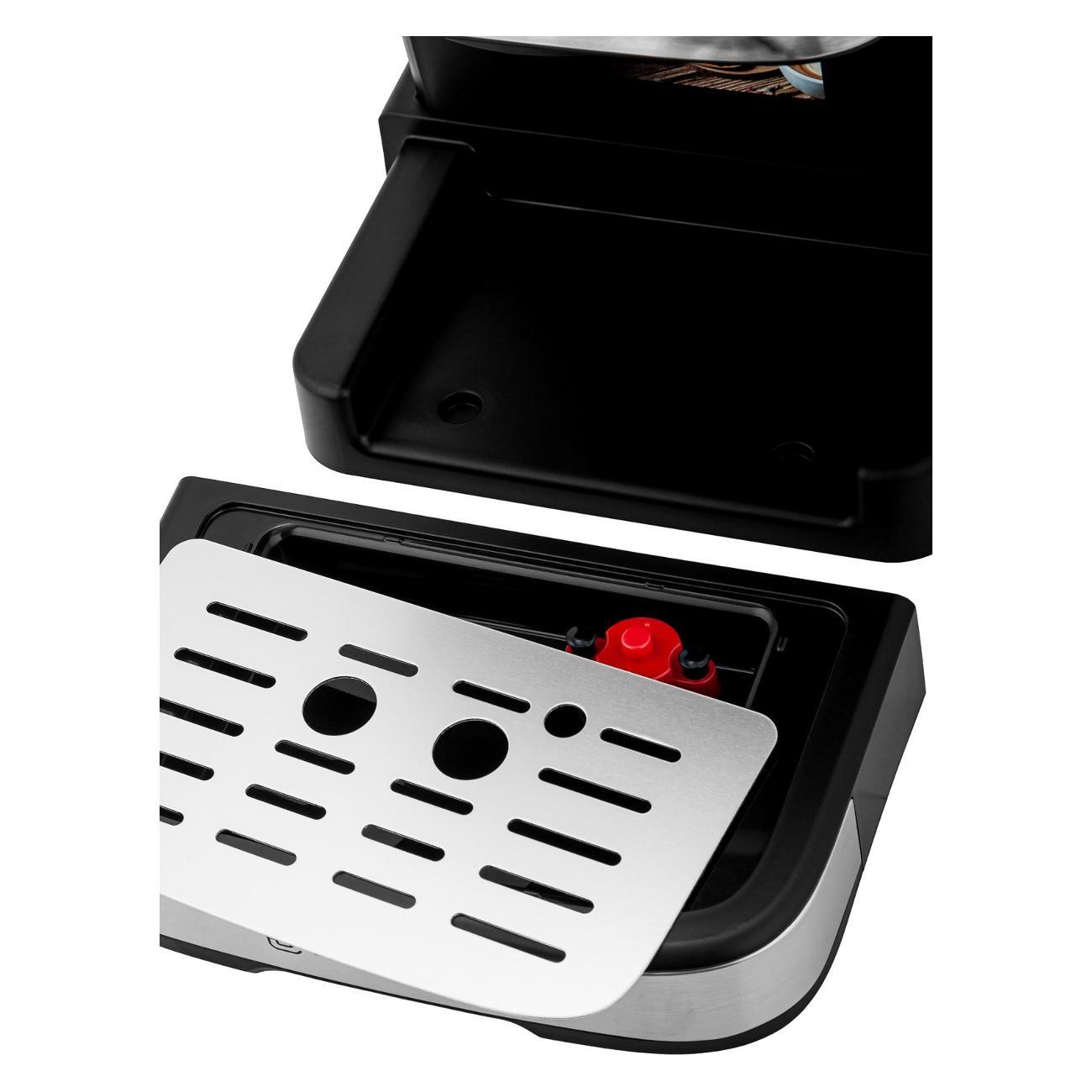 Кофеварка рожкового типа Brayer BR1129 выполнена в черном цвете и работает с давлением до 20 бар. Мощность — 1100 Вт.