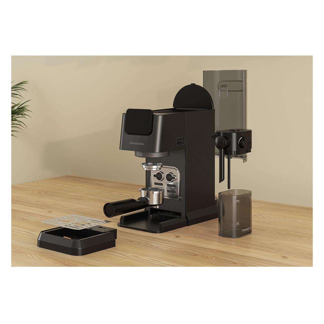 Кофеварка рожкового типа Grundig KSM 5330 Black — модель в черном корпусе с автоматической системой приготовления молочной пены для напитков с молоком. Кофеварка позволяет готовить эспрессо, капучино и латте дома.