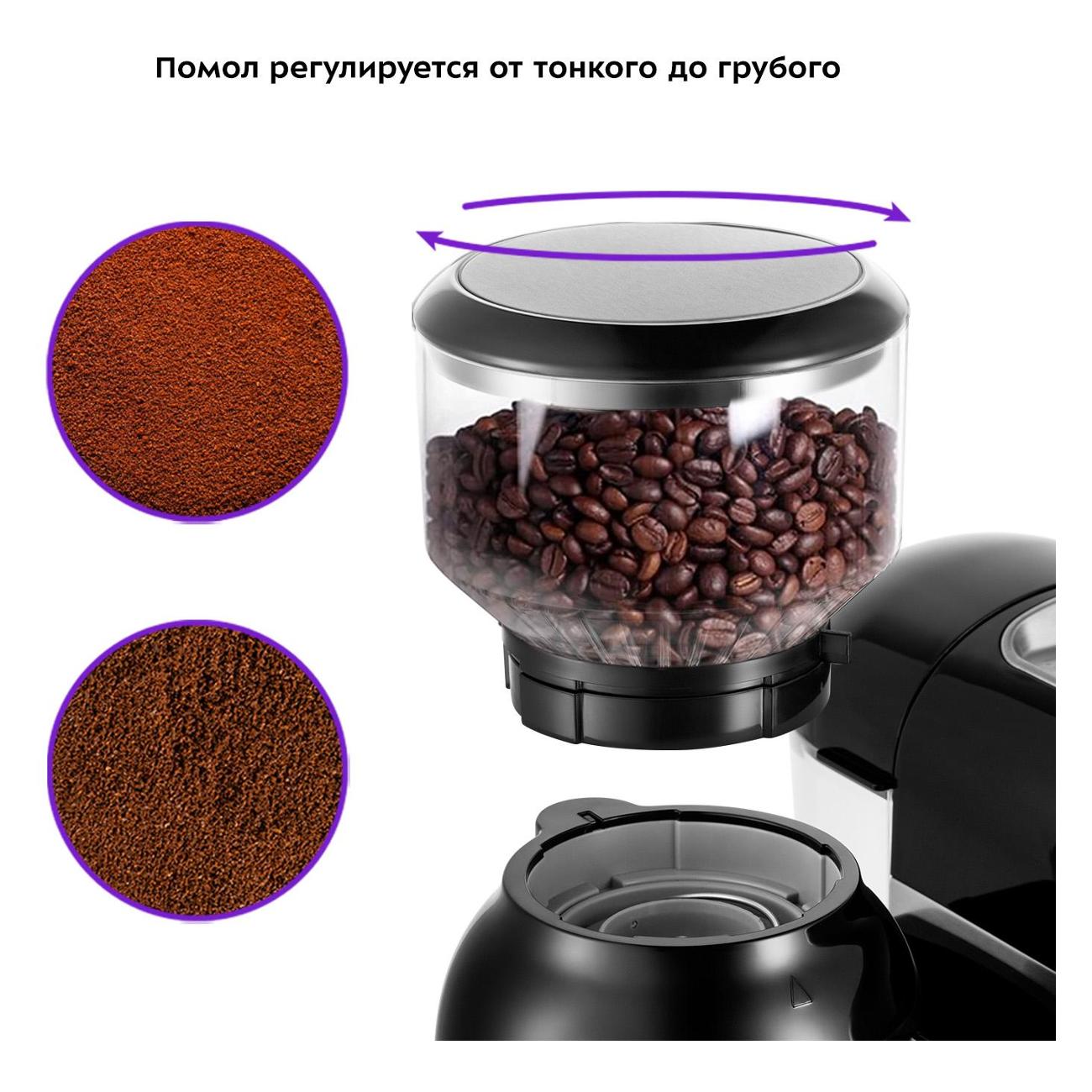 • Регулировка степени помола: дает возможность настроить вкус напитка под предпочтения.