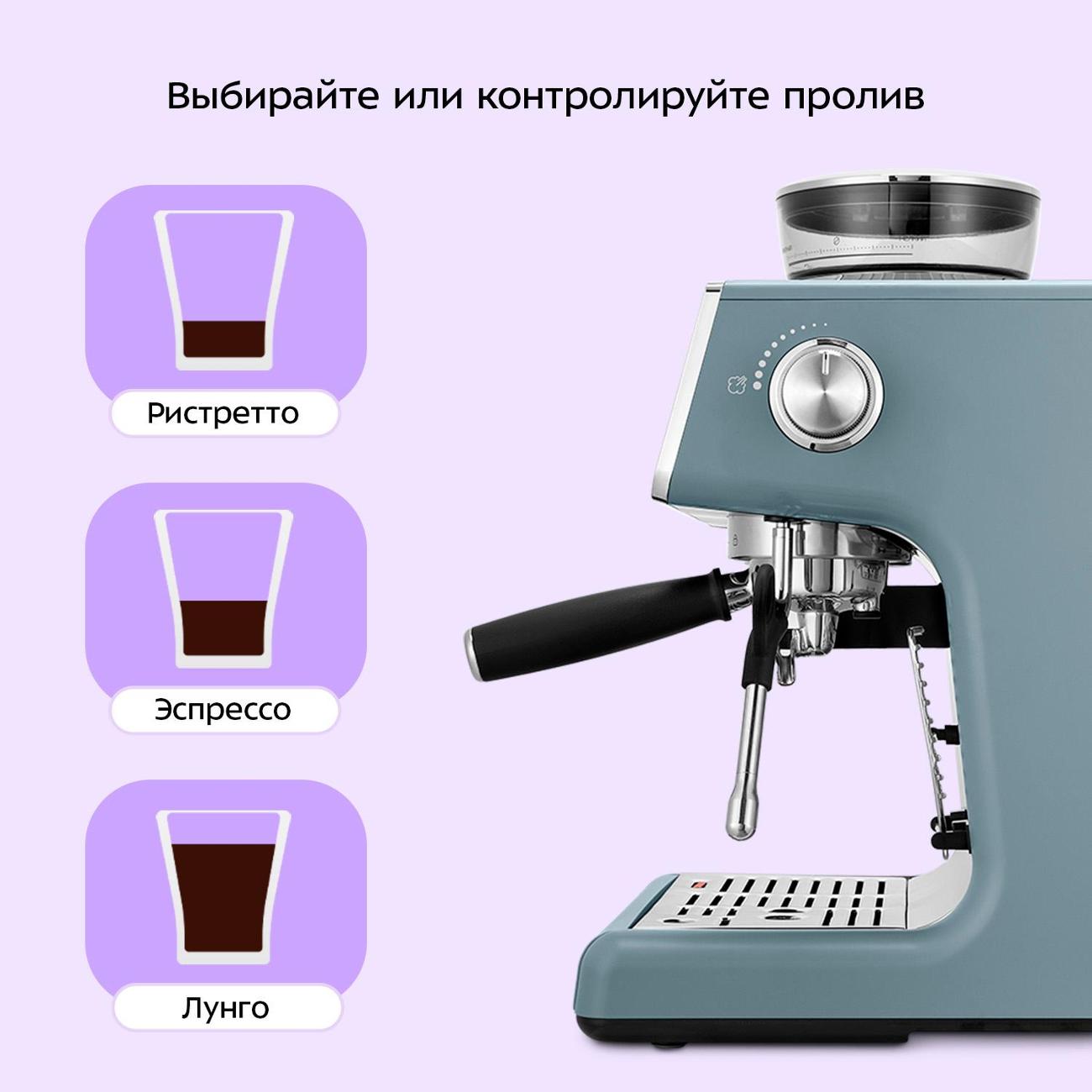 • Встроенная кофемолка с регулировкой степени помола: позволяет использовать свежемолотые зерна и подбирать помол под разные сорта.