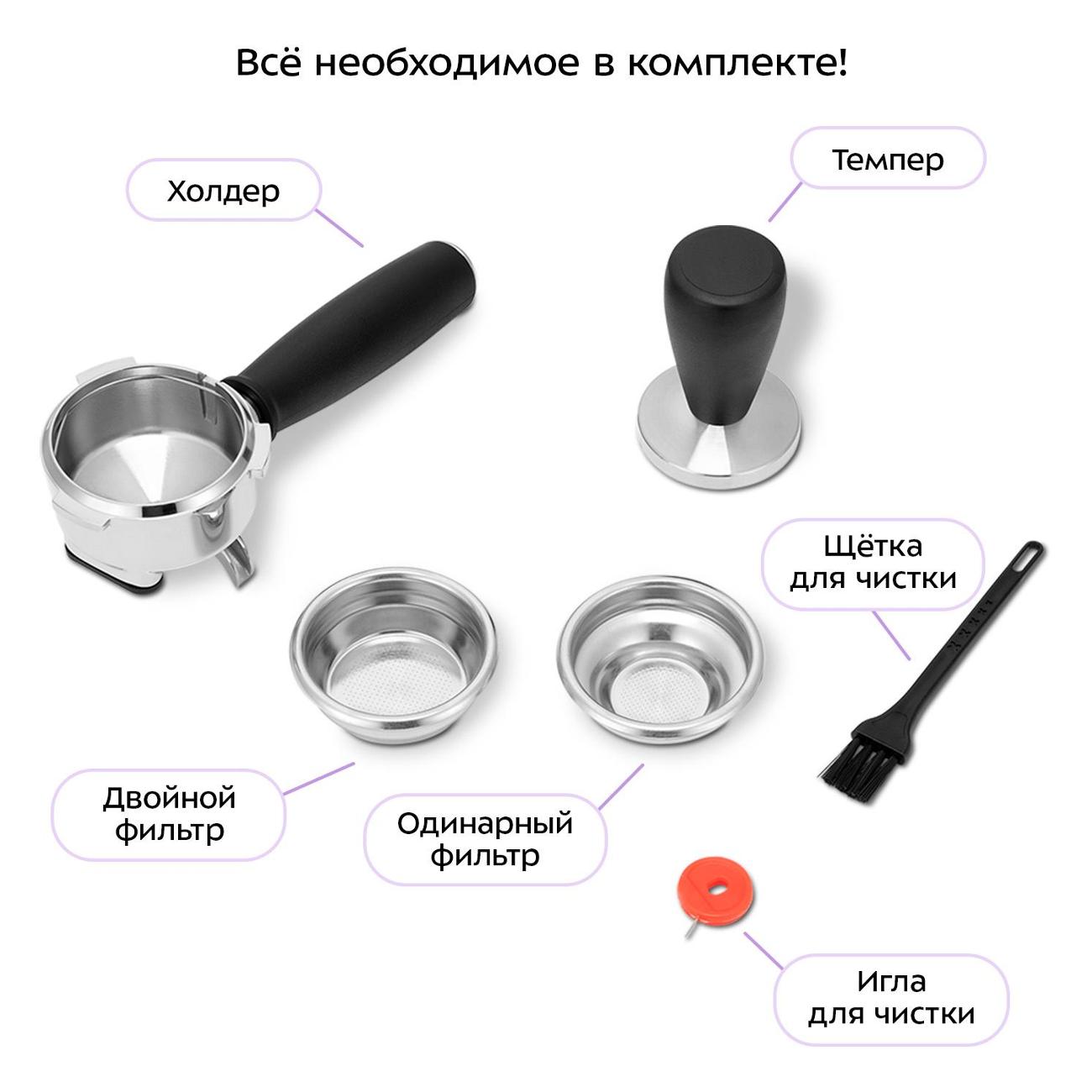 • Давление 20 бар: обеспечивает стабильную подачу воды под давлением для выраженного вкуса напитков.