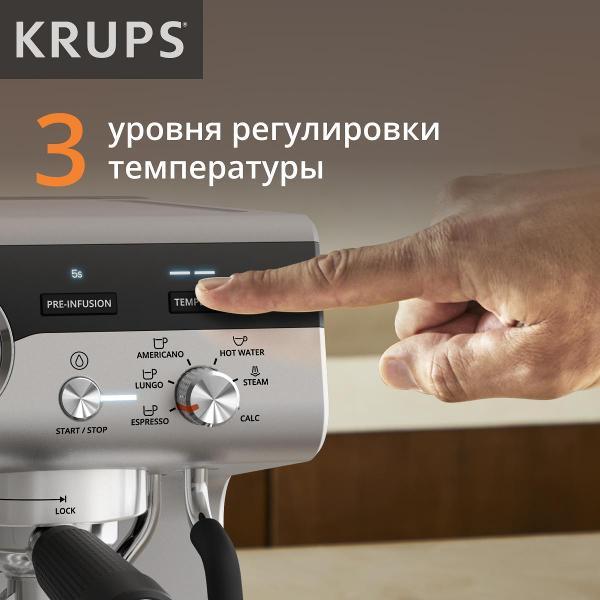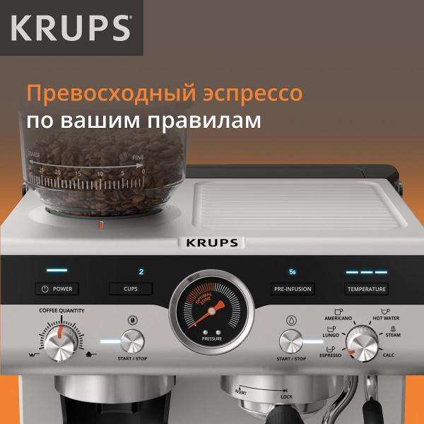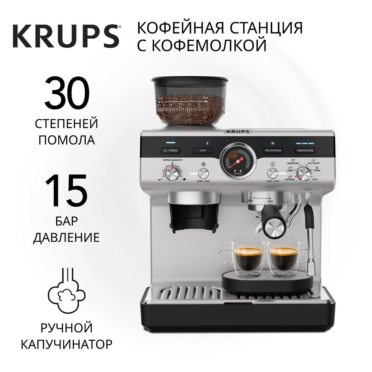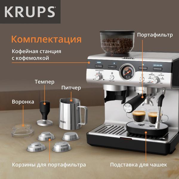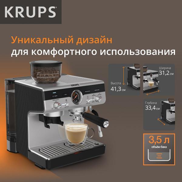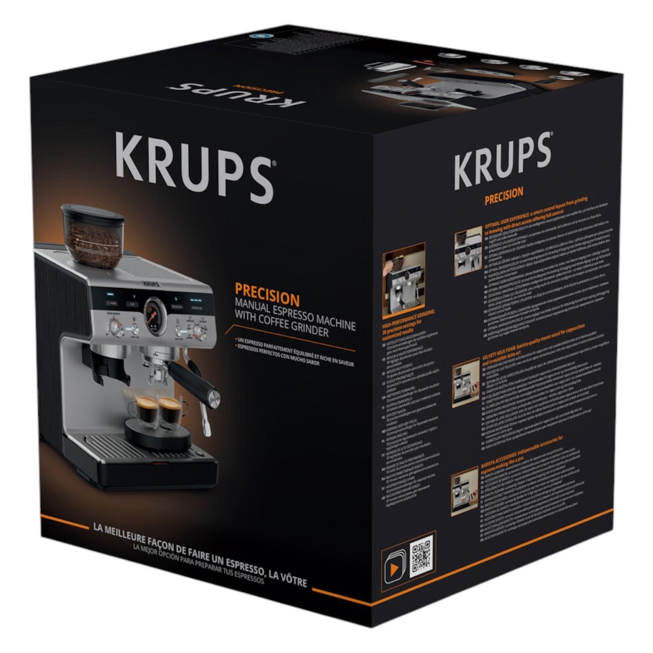 Кофеварка рожкового типа Krups Precision XP801T10 оснащена встроенной кофемолкой и поддерживает молотый кофе и кофе в порционных пакетах. Серебристо-черный корпус и резервуар для воды объемом 3,5 л подходят для частого приготовления напитков дома или в офисе.