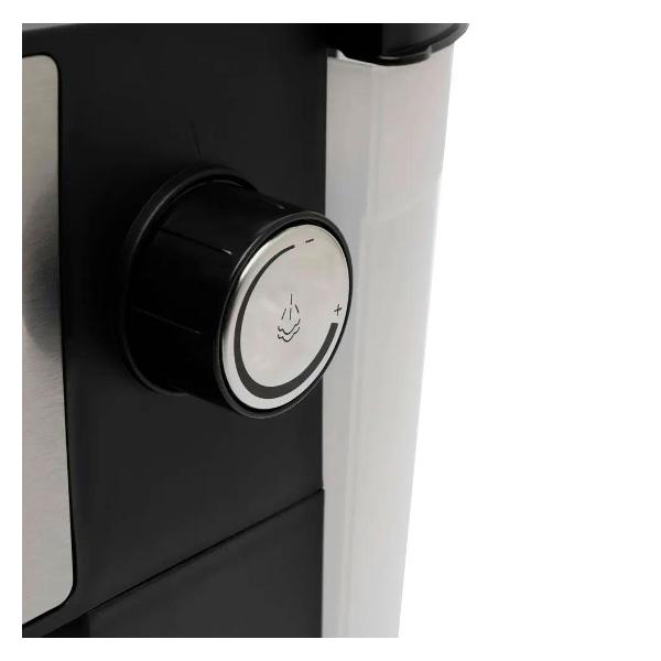 Уровень крепости кофе можно регулировать. Съемный поддон объемом 100 мл собирает капли, легко промывается под струей воды. Встроенный капучинатор позволяет готовить не только эспрессо, но и капучино, латте. Тип управления — механический, предусмотрены индикаторы включения, готовности к работе, недостаточного количества воды.