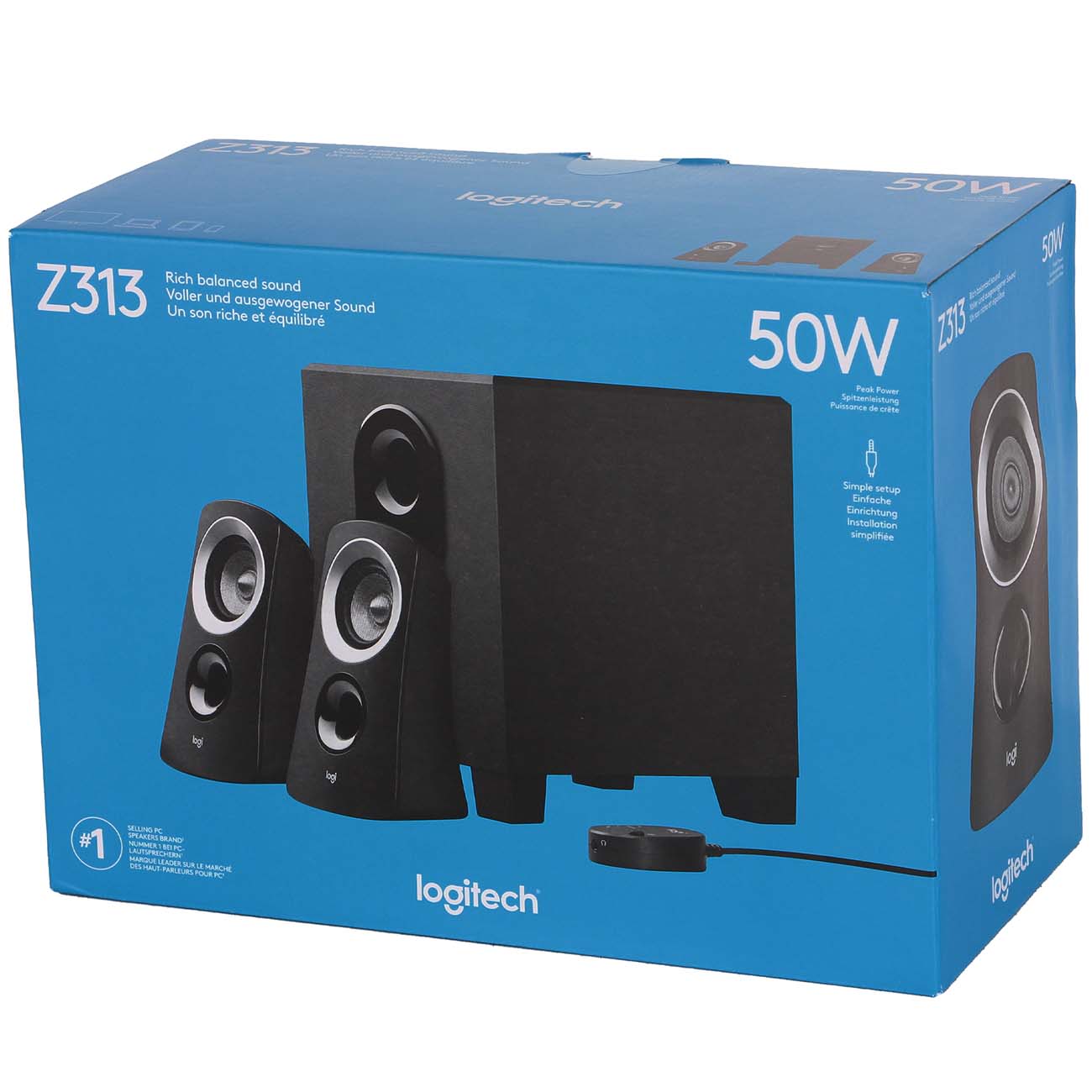 Компьютерные колонки Logitech Z313 созданы по акустической схеме 2.1. Комплект состоит из двух сателлитов и активного сабвуфера, улучшающего передачу низких частот. Суммарная мощность — 25 Вт. Система воспроизводит звук в частотном диапазоне от 48 Гц до 20 кГц.