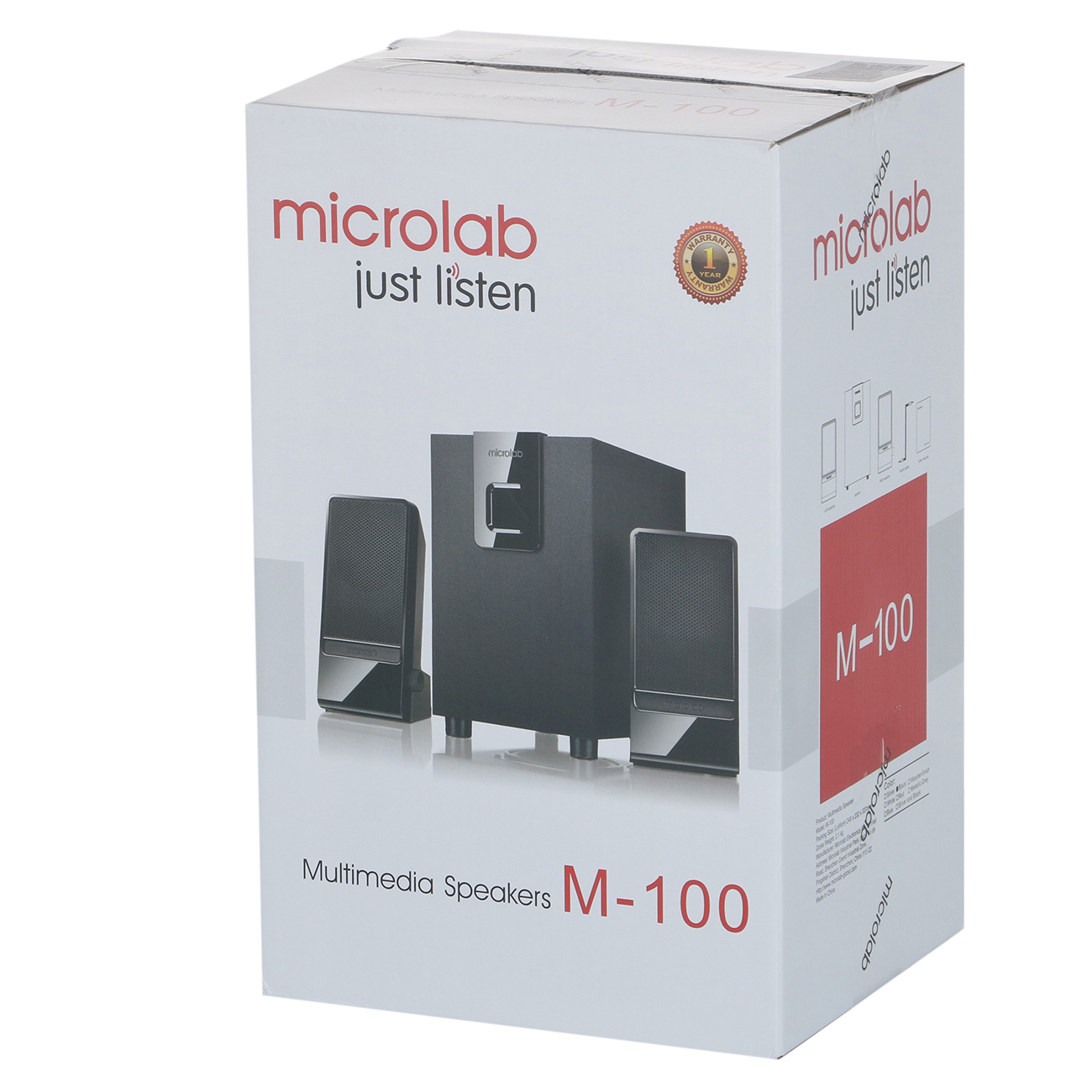 Компьютерные колонки 2.1 Microlab M-100 оборудованы корпусом из МДФ в черном цвете. Комплект включает в себя три колонки и сабвуфер мощностью 5 Вт. Колонки обладают мощностью 2,5 Вт каждая. Частотный диапазон воспроизведения звука составляет 35 Гц-18 кГц. Устройство соединяется с ПК при помощи интерфейса Jack 3,5 мм. Данная модель оснащена ручным управлением и функцией регулировки громкости. Прорезиненные ножки предохраняют поверхность стола от повреждений.