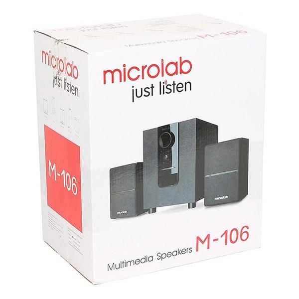 Компьютерные колонки 2.1 Microlab M-106 оборудованы корпусом из МДФ в черном цвете. Комплект включает в себя три колонки и сабвуфер мощностью 5 Вт. Колонки обладают мощностью 2,5 Вт каждая. Частотный диапазон воспроизведения звука составляет 35 Гц-20 кГц. Устройство соединяется с ПК при помощи интерфейса Jack 3,5 мм. Данная модель оснащена ручным управлением и функцией регулировки громкости. Прорезиненные ножки предохраняют поверхность стола от повреждений.