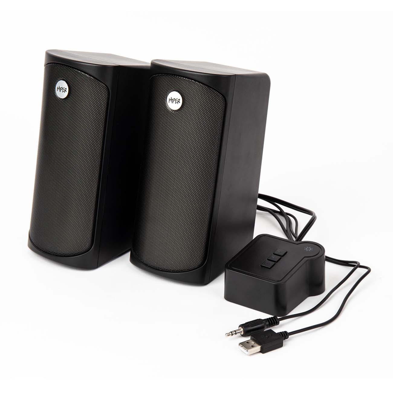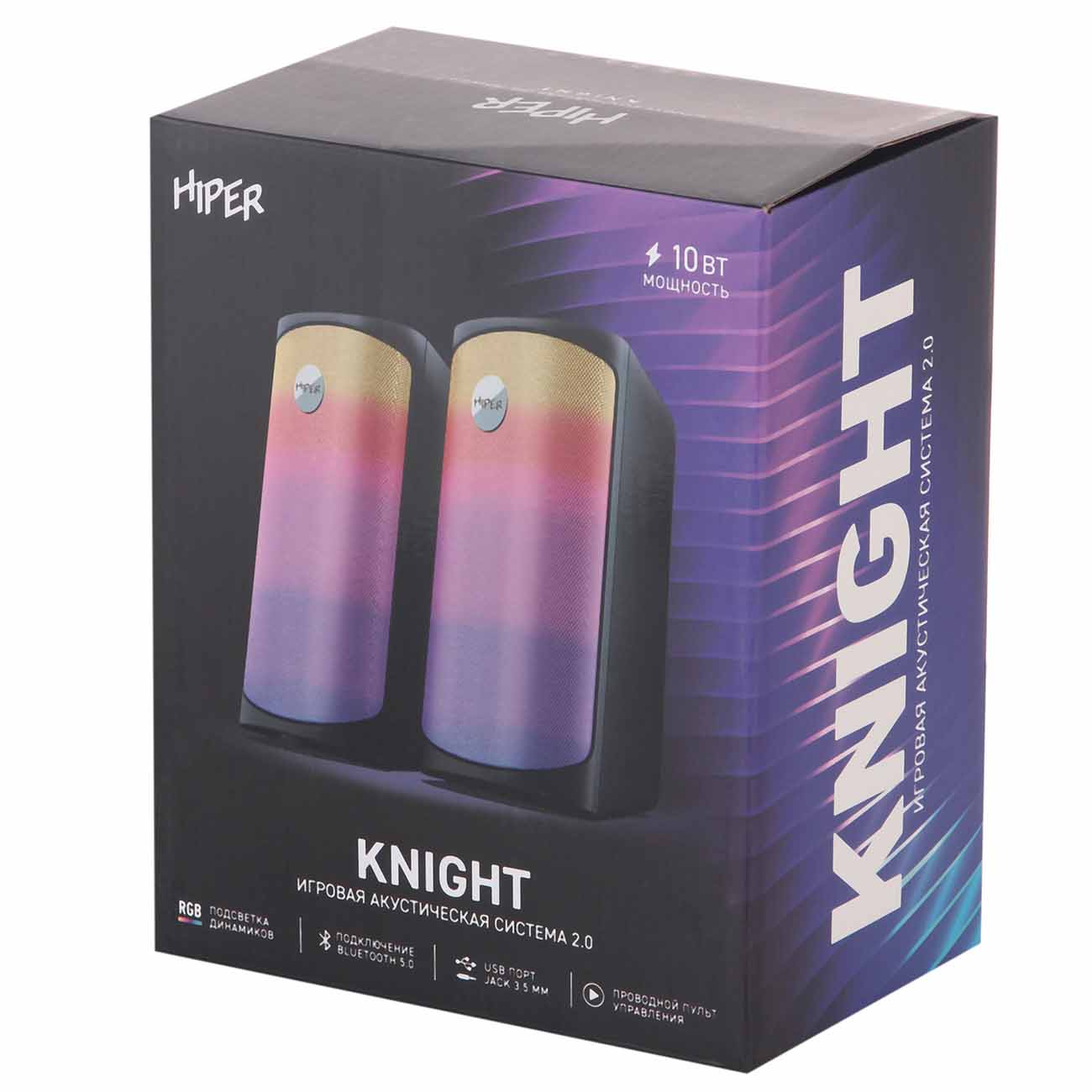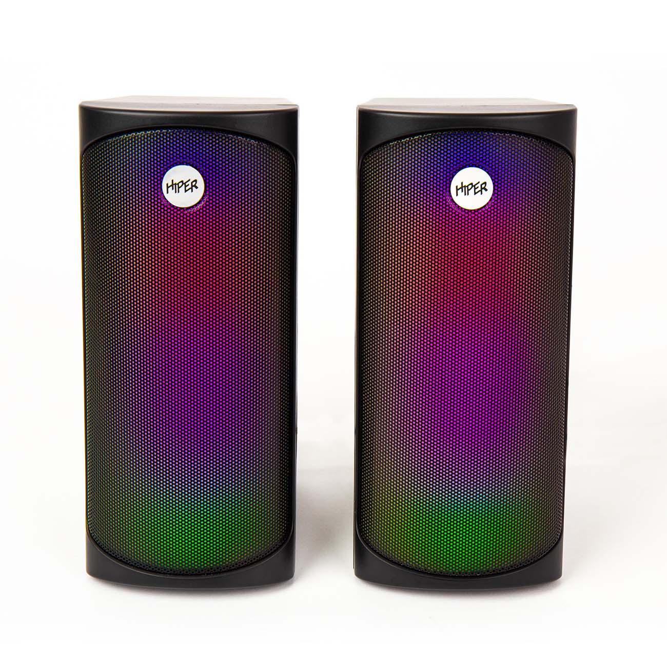 Двухполосные компьютерные колонки Hiper Knight воспроизводят звук мощностью до 10 Вт. Они подключаются к совместимым устройствам через USB-порт, от которого также получают питание, и аудиоразъем 3,5 мм. В комплекте поставки есть беспроводной пульт дистанционного управления, работающий по Bluetooth. Предусмотрена RGB-подсветка фронтальных панелей. Размеры — 17,5 х 7 х 9 см, вес — 0,82 кг.