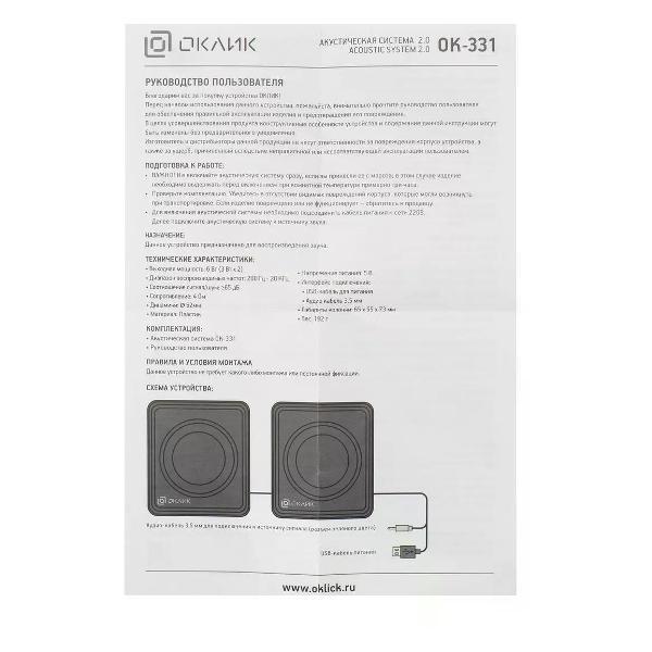 Вы можете купить Колонки компьютерные Oklick OK-331 в магазинах М.Видео по доступной цене. Колонки компьютерные Oklick OK-331: подробное описание, фото и отзывы реальных покупателей, характеристики, возможность скачать инструкции и подобрать аксессуары.