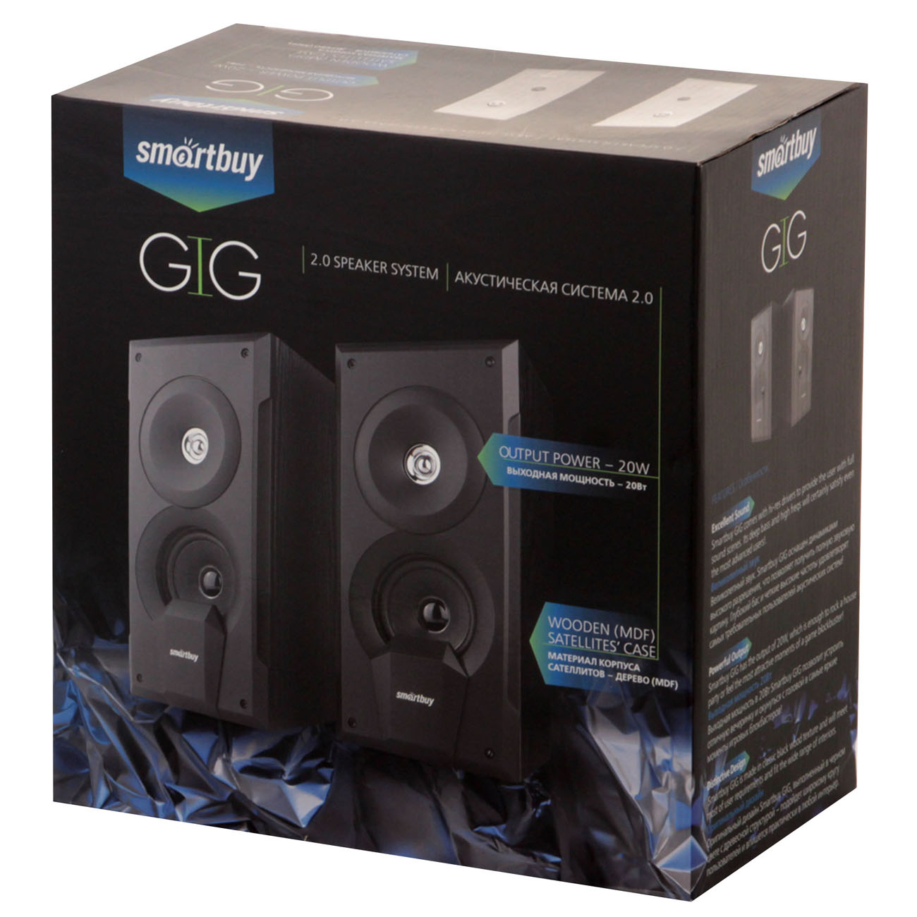 Smartbuy GIG – портативная двухполосная акустическая система. Это удачное решение и для просмотра фильмов, и для прослушивания музыки, и для организации вечеринки: общей выходной мощности 20 Вт хватит, чтобы наполнить звуком даже большую гостиную.