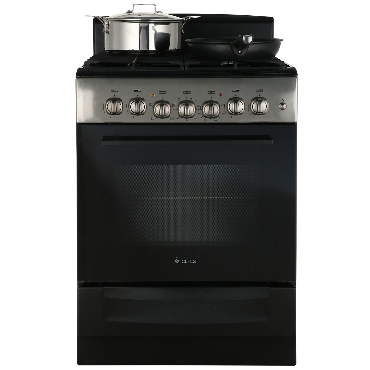 Комбинированная плита (60 см) Gefest ПГЭ 6102-01 0194 (черная/нержавеющая сталь) обладает электроподжигом, который помогает быстро создать искру для получения огня. Предусмотрена возможность работы от газового баллона. На рабочей поверхности расположены четыре газовые конфорки с разным диаметром (от 4,9 см до 8,7 см) и мощностью (от 1 кВт до 1,8 кВт). Чугунная решетка позволяет размещать любую объемную посуду. Эмалированное покрытие можно легко очищать от разных загрязнений с помощью губки и неабразивного моющего средства. Объем камеры электрического духового шкафа — 55 л. Максимальная температура достигает 240°С. Тип очистки — традиционный.