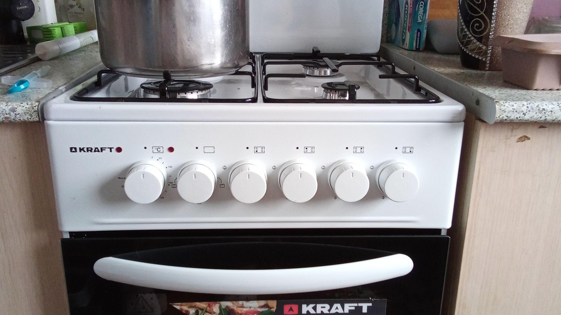 Не было в наличии жиклеров для газа, поэтому мастер поставил со старой плиты, и вовще в моделях крафт их нет. Плохо что нет выдвижного ящика для посуды, но это мой косяк,тне прочитала, так бы выбрала другую модель. А так меня все устраивает. Вчера уже пекла кекс, ничего не подогрело, а в старой плите постоянно низ подгорал, пока что-то испекешь.