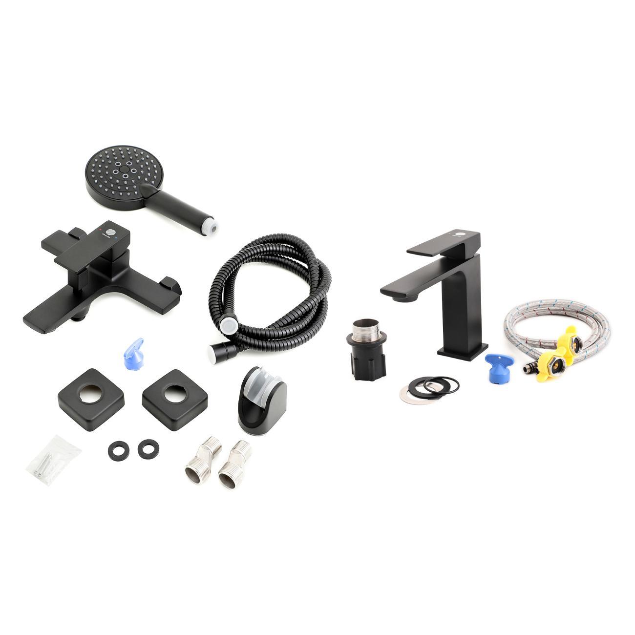 Набор смесителей для ванной комнаты Lutz от немецкой компании Orange – отличный выбор для интерьера в стиле минимализм. Латунное изделие устойчиво к коррозии и высоким температурам, а черное матовое покрытие делает незаметными разводы и высохшие капли. Керамический картридж обеспечивает долговечность изделия, стабильную подачу воды и мощный напор. Излив оснащен пластиковым аэратором, он создает ровную мощную струю и легко очищается от известкового налета. В комплекте душевой набор: душевая лейка d 110 мм (3 режима струи, защита от известкового налета RUB CLEAN, с системой AIR IN), шланг в металлической оплетке 1500 мм с защитой от перекручивания, настенный держатель лейки с регулировкой угла наклона.
