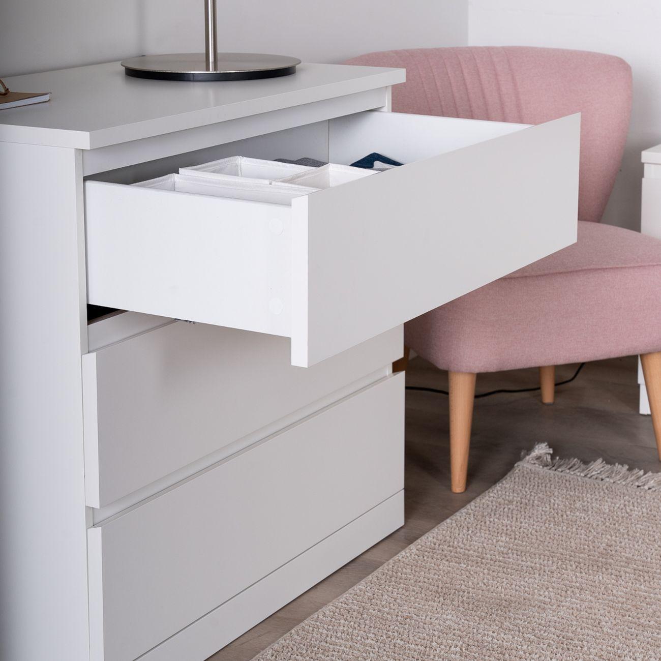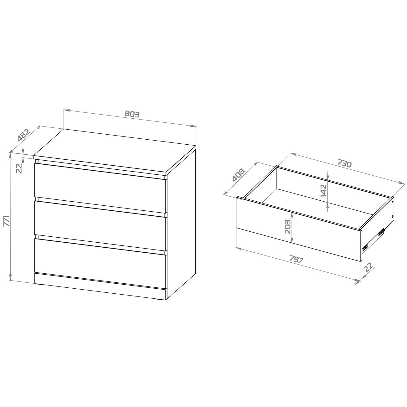 Комод ВАРМА ПРАЙМ 3 ящика 80х77х48 -элегантность и качество в каждой детали! Серия мебели ВАРМА вдохновлена популярными сериями MALM и BILLY от IKEA. Комод ВАРМА ПРАЙМ 3 ящика позволяет организовать хранение всех необходимых вещей благодаря глубине и максимальной нагрузке 8 кг. Комод ВАРМА представлен в трех вариантах: Белый цвет покрыт прочной эмалью. Эмалевое покрытие создает гладкую, ровную поверхность с приятным матовым блеском, добавляя мебели изысканности и визуальной легкости. Оно устойчиво к царапинам, влаге и выгоранию, что делает комод долговечным и простым в уходе. Цвета "ясень коричневый" и "беленый дуб" покрыты натуральным шпоном. Шпон сохраняет естественную текстуру древесины, придавая комоду благородный внешний вид и добавляя интерьеру уют и теплоту. Доводчики обеспечивают плавное и тихое закрывание ящиков. Направляющие полного выдвижения позволяют выдвигать ящик целиком. Наша мебель производится на фабрике полного цикла в Беларуси, которая ранее производила мебель для шведского бренда по принципу «от древесины до готового изделия». Комод ВАРМА изготовлена на сертифицированной фабрике в Беларуси, которая ранее производила мебель для шведского бренда. Детали в упаковке уложены максимально плотно, с использованием демпфирующих материалов. Это позволяет максимально снизить риск повреждения при транспортировке. Подробная инструкция поможете самим легко и быстро собрать нашу мебель.