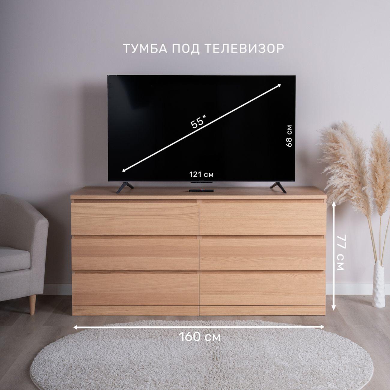 Комод ВАРМА ПРАЙМ 6Д комод 160x77x48— элегантность и качество в каждой детали! Серия мебели ВАРМА вдохновлена популярными сериями MALM и BILLY от IKEA. Комод ВАРМА 6 ящиков может служить не только отличным комодом, но и прекрасной ТВ тумбой, максимальная рекомендованная нагрузка на столешницу 15 кг, ширина столешницы 160 см. Комод ВАРМА представлен в трех вариантах: Белый цвет покрыт прочной эмалью. Эмалевое покрытие создает гладкую, ровную поверхность с приятным матовым блеском, добавляя мебели изысканности и визуальной легкости. Оно устойчиво к царапинам, влаге и выгоранию, что делает комод долговечным и простым в уходе. Цвета ясень коричневый" и "беленый дуб" покрыты натуральным шпоном. Шпон сохраняет естественную текстуру древесины, придавая комоду благородный внешний вид и добавляя интерьеру уют и теплоту. Доводчики обеспечивают плавное и тихое закрывание ящиков. Направляющие полного выдвижения позволяют выдвигать ящик целиком. Наша мебель производится на фабрике полного цикла в Беларуси, которая ранее производила мебель для шведского бренда по принципу «от древесины до готового изделия». Комод ВАРМА изготовлена на сертифицированной фабрике в Беларуси, которая ранее производила мебель для шведского бренда. Детали в упаковке уложены максимально плотно, с использованием демпфирующих материалов. Это позволяет максимально снизить риск повреждения при транспортировке. Подробная инструкция поможете самим легко и быстро собрать нашу мебель.