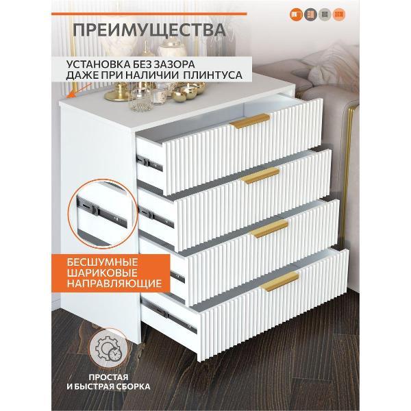 Комод с четырьмя ящиками и золотыми ручками это стильный и функциональный элемент интерьера, который прекрасно впишется в любую комнату. Благодаря своему современному дизайну и оригинальным декоративным элементам, он станет ярким акцентом в помещении.