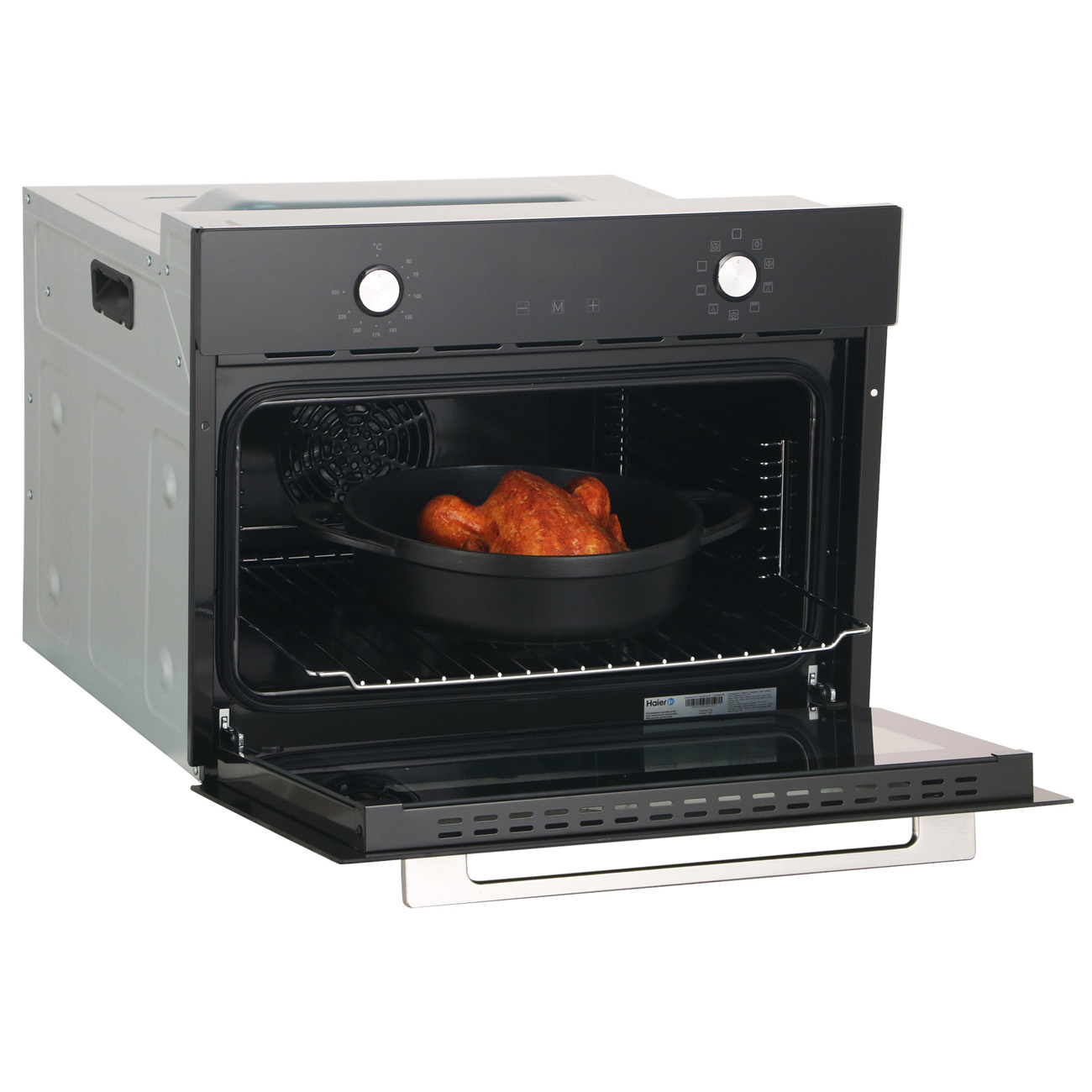 Черный компактный духовой шкаф Haier HOY-P09NCGB с девятью программами оснащен утапливаемыми поворотными ручками. Функция конвекции способствует равномерному пропеканию пищи. Габариты модели — 45х57х59,5 см. Вес изделия — 23,6 кг. В комплектацию входят решетка для гриля, противень. Индикация показывает режим работы и время приготовления. Панель управления блокируется для предотвращения случайного нажатия. Дверца из двойного жаропрочного стекла надежно удерживает тепло. Объем духовки — 45 л. Об окончании программы оповещает звуковой сигнал.