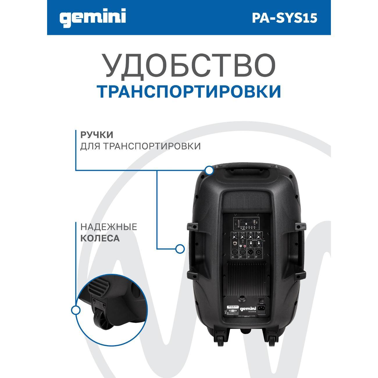 Вы можете купить Комплект акустической системы Gemini PA-SYS15 в магазинах М.Видео по доступной цене. Комплект акустической системы Gemini PA-SYS15: подробное описание, фото и отзывы реальных покупателей, характеристики, возможность скачать инструкции и подобрать аксессуары.