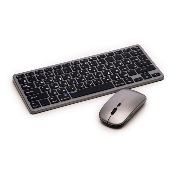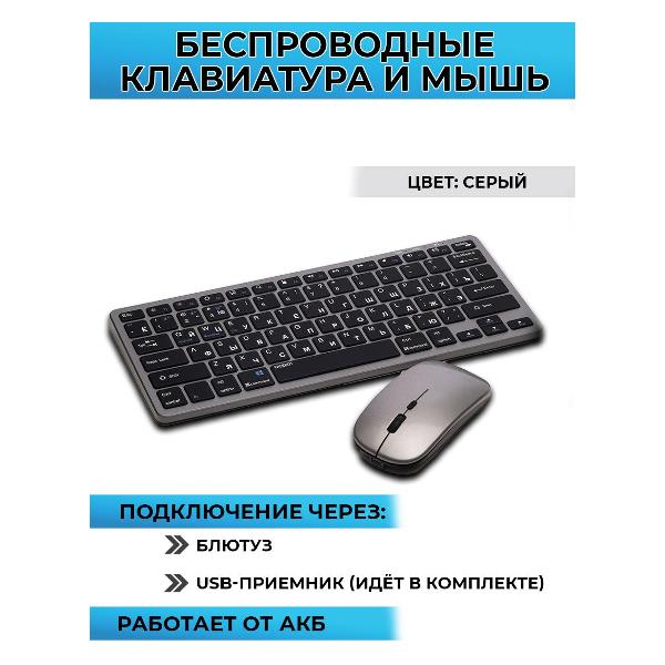 Комплект с клавиатурой и мышью Wisebot 10616 благодаря качественной сборке работает практически бесшумно. Данная модель подходит для работы на ПК, ноутбуке, планшете и смартфоне. Коммуникация осуществляется при помощи беспроводной технологии Bluetooth и USB-приемники. Рабочее расстояние от подключаемого устройства составляет 10 м. Модель оборудована литиево-ионными батареями.