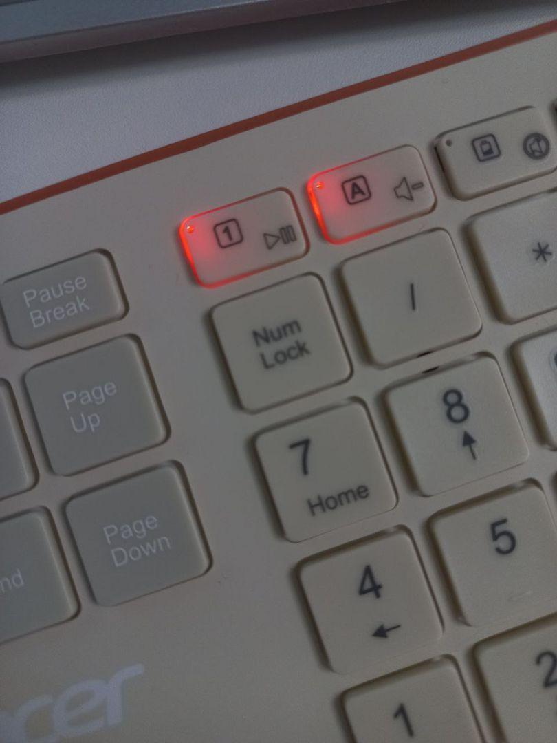 -Подсветка у трех клавиш - по задумке должна гореть лампочка, ну я так думала, когда увидела клавиатуру в магазине, но горит диод под кнопкой, на фото видно. Когда это обнаружила, было очень смешно, зачем тогда в клавише делали отверстие под лампочку - непонятно.