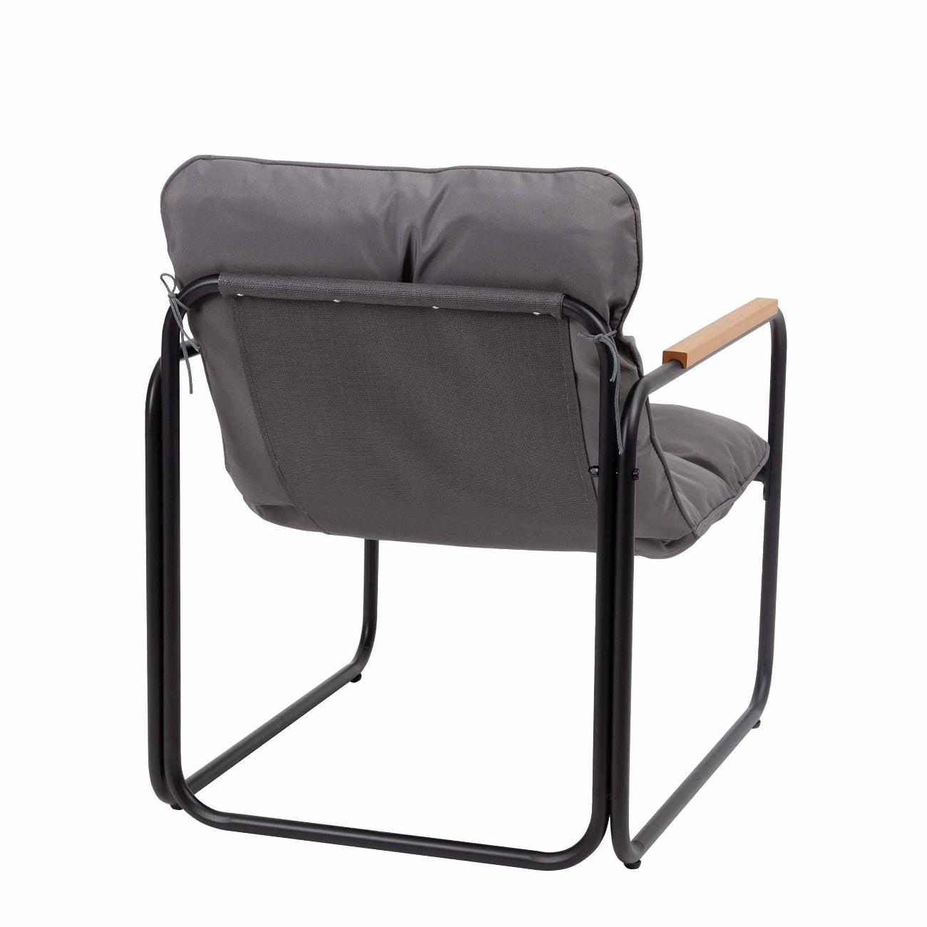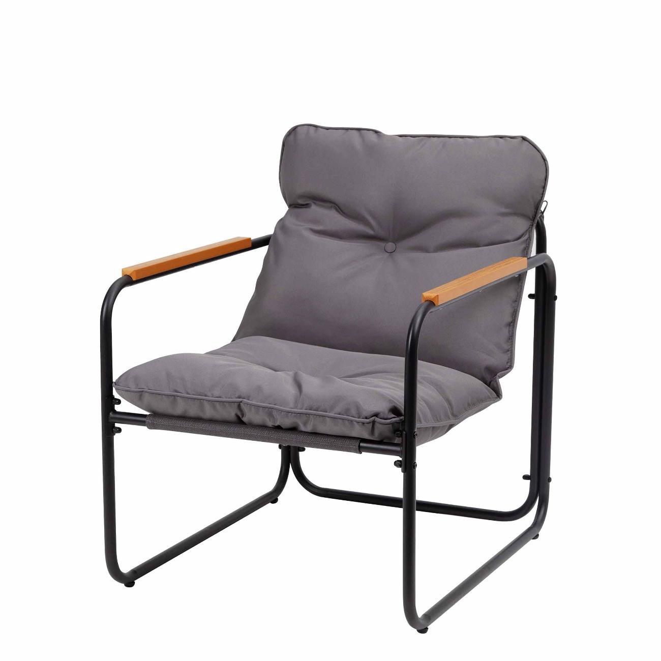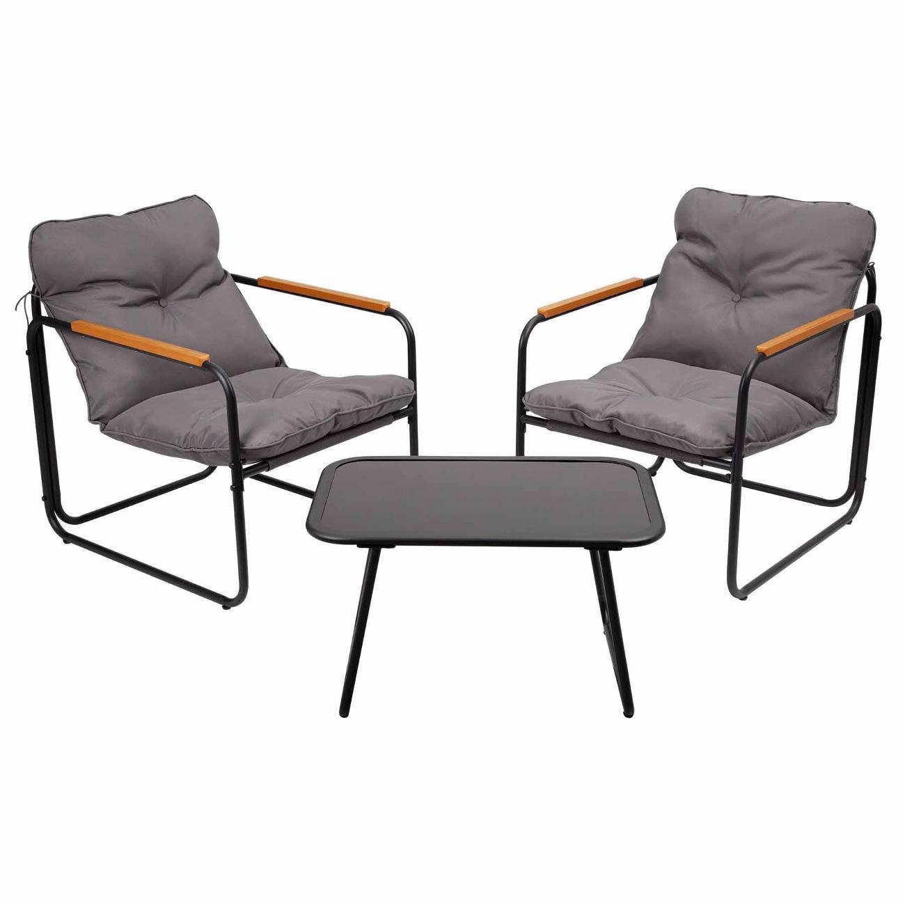 В набор входят удобный двухместный диван, 2 кресла и низкий маленький столик с прочной столешницей из закаленного стекла. Каркас мебели в стиле лофт выполнен из устойчивой к внешним воздействиям нержавеющей стали с порошковым окрашиванием, а сиденья и спинки изготовлены из текстилена, который отлично переносит любые погодные условия. Съёмные серые подушки из полиэстера с синтетическим наполнителем придают мягкость и уют.
