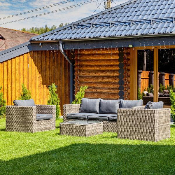 Плетеная мебель из ротанга, созданная из полимера — обоснованный выбор для использования под открытым небом.