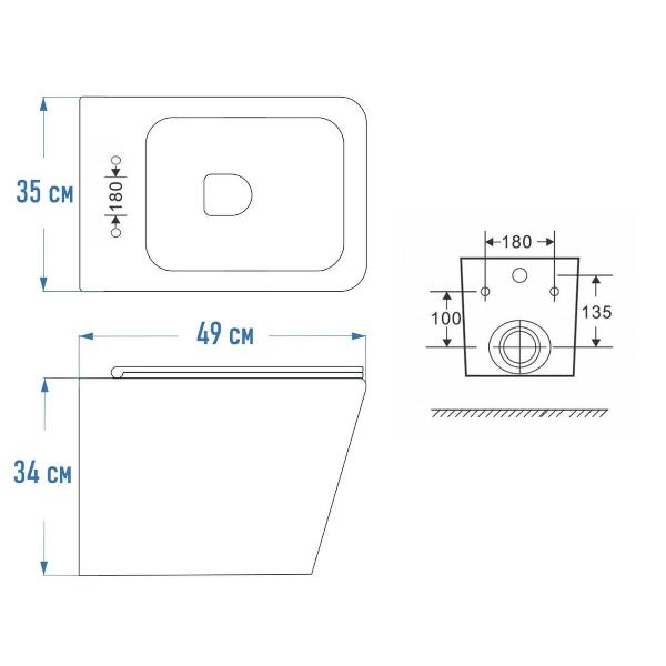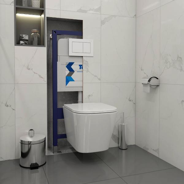 Комплект «Готовое решение» для установки инсталляции с подвесным унитазом: -- инсталляция TEYMI AINA 50 T70033 – монтажная рама из цельного стального профиля прямоугольного сечения, позволяющая выдерживать нагрузки до 400 кг. Габаритная ширина рамы 525 мм; -- клавиша смыва TEYMI AINA T70020WM, цвет БЕЛЫЙ МАТОВЫЙ; -- унитаз подвесной безободковый TEYMI HELMI S T40302; -- ультратонкое сиденье с микролифтом; -- полный комплект арматуры для монтажа: уплотнительные кольца, манжеты, труба смыва, фановый отвод с удлинителем, защитный кожух ревизионного окна с крепежной рамкой, закрывающей панелью и крышкой; -- полный комплект крепежа для установки: крепеж к стене, шпильки для унитаза, крепежная рамка, соединительные шпильки, толкатели, фиксаторы; -- инструкция по установке и обслуживанию. Преимущества комплекта: -- полная (максимальная) комплектация для установки - больше ничего докупать не придётся; -- все составляющие комплекта идеально подходят друг к другу; -- рама покрыта суперпрочной порошковой краской синего цвета с антикоррозионными свойствами; -- высота монтажной рамы может регулироваться с ходом до 20 см с помощью ножек из оцинкованной стали; -- универсальный монтаж – межосевое расстояние под шпильки для подвесного унитаза 180 и 230 мм – подходит ко всем подвесным унитазам; -- сливной бачок скрытого монтажа, изготовленный из полиэтилена низкого давления, рассчитан на 200 тысяч циклов смыва, а цельнолитая бесшовная конструкция позволит работать без протечек в течение всего периода эксплуатации; -- 2-режимный слив 3 / 6 л с возможностью регулировки; -- лёгкость обслуживания бачка благодаря ревизионному окну, скрытому за клавишей смыва; -- гарантия 10 лет на весь комплект и 50 лет на стальную раму. Размер инсталляции с бачком: высота 1055 мм Х ширина 525 мм Х глубина 96 мм. Уважаемые покупатели, обращаем ваше внимание на то, что система инсталляции TEYMI AINA 50 может быть также укомплектована другими клавишами смыва или подвесными унитазами от бренда TEYMI (вы можете найти их на этом сайте по указанным артикулам). Предлагаем вам рассмотреть варианты сочетания со следующими клавишами: : HELMI хром T70202CH : HELMI черная T70203BM : HELMI белая T70018WM : LINA хром T70102CH : LINA черная T70103BM : LINA белая T70019WM : AINA хром T70012CH : AINA черная T70013BM : AINA белая T70020WM : KATI хром T70701CH : KATI черная T70702BM : KATI белая T70021WM : ELLIE хром T70022CH : ELLIE черная T70023BM : ELLIE белая T70024WM Также просим обратить взгляд на наши лучшие безободковые подвесные унитазы: : SOLLI T40201 : LINA S T40102 : HELMI S T40302 : HELMI VORTEX T40303 : IVA T40601 : ELLIE T40802 : LINA MEDIA T40105 : KATI T40701 : HANNA PRO T40901 : HELMI S BLACK T40302MB : VITRA PRO T40806 : VITRA T40804 : DEMI T40208 : LINA VORTEX T40110 : RITTA T40809 : LINA PRO T40106 : LINA S BLACK T40111