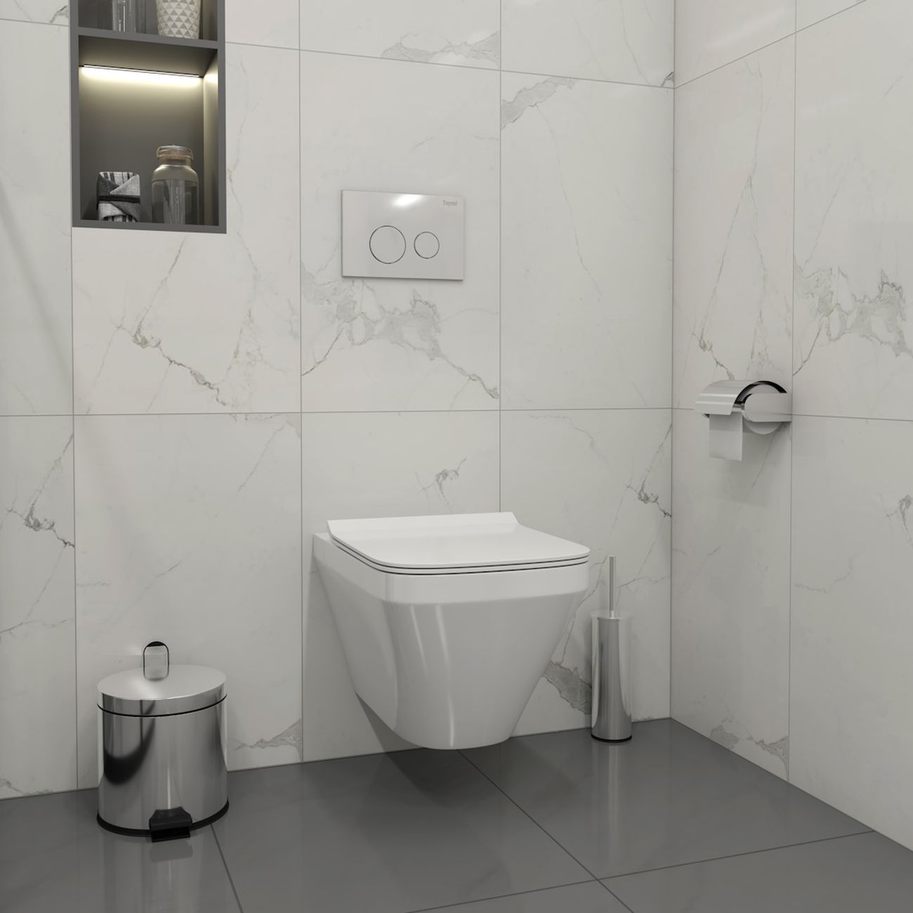 Комплект «Готовое решение» для установки инсталляции с подвесным унитазом: -- инсталляция TEYMI AINA 50 T70033 – монтажная рама из цельного стального профиля прямоугольного сечения, позволяющая выдерживать нагрузки до 400 кг. Габаритная ширина рамы 525 мм; -- клавиша смыва TEYMI LINA T70102CH, цвет ХРОМ ГЛЯНЕЦ; -- унитаз подвесной безободковый TEYMI KATI T40701; -- ультратонкое сиденье с микролифтом; -- полный комплект арматуры для монтажа: уплотнительные кольца, манжеты, труба смыва, фановый отвод с удлинителем, защитный кожух ревизионного окна с крепежной рамкой, закрывающей панелью и крышкой; -- полный комплект крепежа для установки: крепеж к стене, шпильки для унитаза, крепежная рамка, соединительные шпильки, толкатели, фиксаторы; -- инструкция по установке и обслуживанию. Преимущества комплекта: -- полная (максимальная) комплектация для установки - больше ничего докупать не придётся; -- все составляющие комплекта идеально подходят друг к другу; -- рама покрыта суперпрочной порошковой краской синего цвета с антикоррозионными свойствами; -- высота монтажной рамы может регулироваться с ходом до 20 см с помощью ножек из оцинкованной стали; -- универсальный монтаж – межосевое расстояние под шпильки для подвесного унитаза 180 и 230 мм – подходит ко всем подвесным унитазам; -- сливной бачок скрытого монтажа, изготовленный из полиэтилена низкого давления, рассчитан на 200 тысяч циклов смыва, а цельнолитая бесшовная конструкция позволит работать без протечек в течение всего периода эксплуатации; -- 2-режимный слив 3 / 6 л с возможностью регулировки; -- лёгкость обслуживания бачка благодаря ревизионному окну, скрытому за клавишей смыва; -- гарантия 10 лет на весь комплект и 50 лет на стальную раму. Размер инсталляции с бачком: высота 1055 мм Х ширина 525 мм Х глубина 96 мм. Уважаемые покупатели, обращаем ваше внимание на то, что система инсталляции TEYMI AINA 50 может быть также укомплектована другими клавишами смыва или подвесными унитазами от бренда TEYMI (вы можете найти их на этом сайте по указанным артикулам). Предлагаем вам рассмотреть варианты сочетания со следующими клавишами: : HELMI хром T70202CH : HELMI черная T70203BM : HELMI белая T70018WM : LINA хром T70102CH : LINA черная T70103BM : LINA белая T70019WM : AINA хром T70012CH : AINA черная T70013BM : AINA белая T70020WM : KATI хром T70701CH : KATI черная T70702BM : KATI белая T70021WM : ELLIE хром T70022CH : ELLIE черная T70023BM : ELLIE белая T70024WM Также просим обратить взгляд на наши лучшие безободковые подвесные унитазы: : SOLLI T40201 : LINA S T40102 : HELMI S T40302 : HELMI VORTEX T40303 : IVA T40601 : ELLIE T40802 : LINA MEDIA T40105 : KATI T40701 : HANNA PRO T40901 : HELMI S BLACK T40302MB : VITRA PRO T40806 : VITRA T40804 : DEMI T40208 : LINA VORTEX T40110 : RITTA T40809 : LINA PRO T40106 : LINA S BLACK T40111