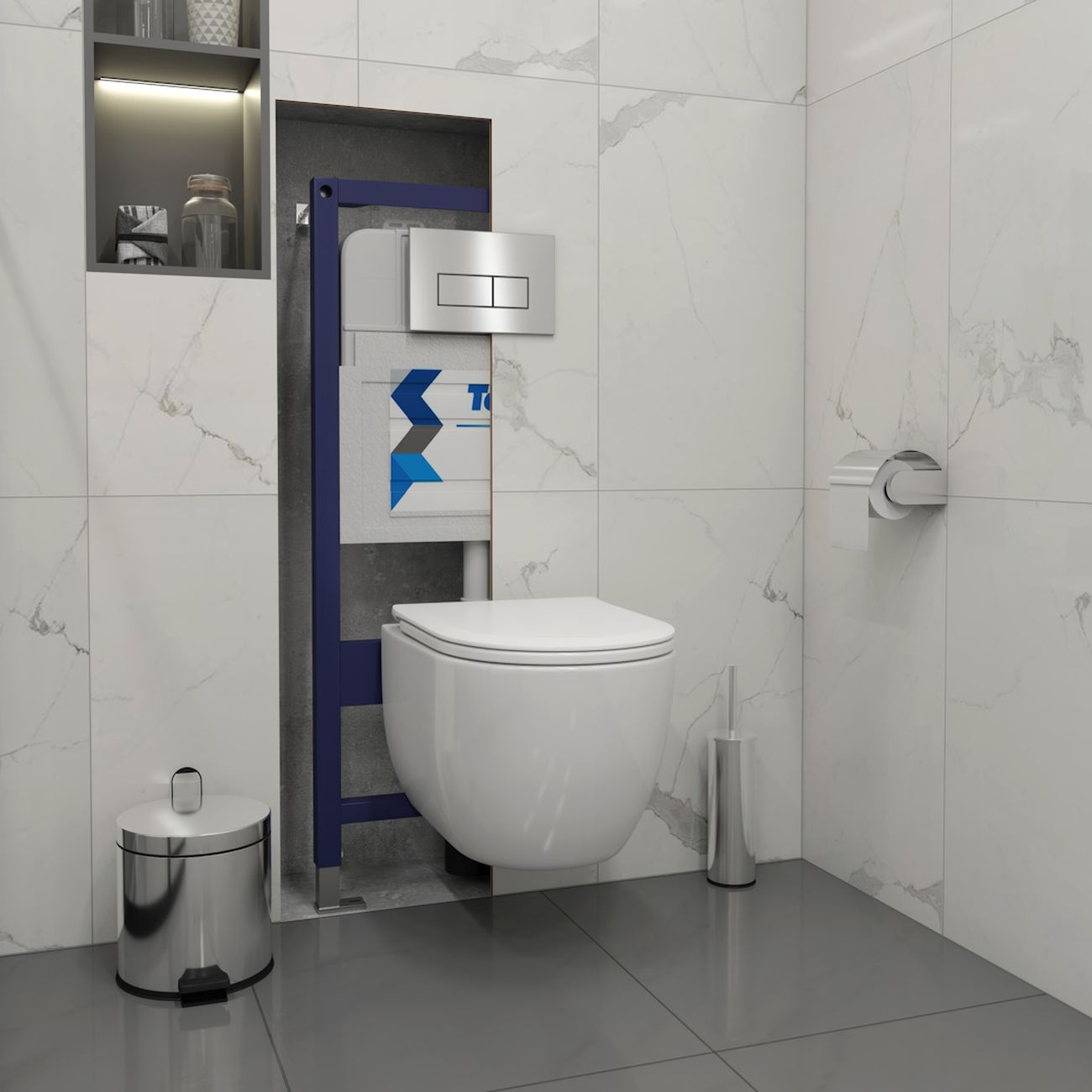 Комплект «Готовое решение» для установки инсталляции с подвесным унитазом включает: -- инсталляция TEYMI AINA 52 T70011 – монтажная рама из стального профиля толщиной 1.5 мм увеличенной ширины 52,5 см с дополнительными вертикальными усиливающими стойками, что позволяет выдерживать нагрузки до 400 кг; -- цельнолитой бачок скрытого монтажа; -- клавиша смыва TEYMI HELMI T70204, цвет НЕРЖАВЕЮЩАЯ СТАЛЬ МАТОВЫЙ; -- унитаз подвесной TEYMI Lori Vortex T40502; -- быстросъёмное сиденье с микролифтом; -- полный комплект арматуры для монтажа, включающий в себя уплотнительные кольца и манжеты, трубу смыва, фановый отвод с удлинителем, защитный кожух ревизионного окна с крепежной рамкой, закрывающей панелью и крышкой; -- полный комплект крепежа для установки, а именно: крепеж к стене, шпильки для унитаза, крепежная рамка, соединительные шпильки, толкатели; -- инструкция по установке и обслуживанию. Преимущества комплекта «Готовое решение» для установки инсталляции с подвесным унитазом: -- полная (максимальная) комплектация для установки - больше ничего докупать не придётся; -- все составляющие комплекта идеально подходят друг к другу; -- взаимозаменяемость комплектующих; -- рама покрыта суперпрочной порошковой краской с антикоррозионными свойствами; -- высота рамы может регулироваться с ходом до 20 см с помощью ножек, изготовленных из оцинкованной стали; -- сливной бачок скрытого монтажа изготовлен из современных полимерных материалов и является цельнолитым (бесшовным), что позволяет ему работать без протечек в течение всего периода эксплуатации; -- лёгкость обслуживания сливного бачка достигается благодаря удобному ревизионному окну, скрытому за клавишей смыва; -- клавиша смыва имеет две кнопки и работает в режиме ЭКОНОМ / ПОЛНЫЙ (объёмы смыва 3 / 6 литров); -- гарантия на весь комплект составляет 10 лет, а рама прослужит все 50. Уважаемые покупатели, обращаем ваше внимание на то, что система инсталляции TEYMI AINA 52 может быть также укомплектована другими клавишами смыва или подвесными унитазами от бренда TEYMI (вы можете найти их на этом сайте по указанным артикулам). Предлагаем вам рассмотреть варианты сочетания со следующими клавишами: : HELMI хром T70202CH : HELMI черная T70203BM : HELMI белая T70018WM : LINA хром T70102CH : LINA черная T70103BM : LINA белая T70019WM : AINA хром T70012CH : AINA черная T70013BM : AINA белая T70020WM : KATI хром T70701CH : KATI черная T70702BM : KATI белая T70021WM : ELLIE хром T70022CH : ELLIE черная T70023BM : ELLIE белая T70024WM Также просим обратить взгляд на наши лучшие безободковые подвесные унитазы: : SOLLI T40201 : LINA S T40102 : HELMI S T40302 : HELMI VORTEX T40303 : IVA T40601 : ELLIE T40802 : LINA MEDIA T40105 : KATI T40701 : HANNA PRO T40901 : HELMI S BLACK T40302MB : VITRA PRO T40806 : VITRA T40804 : DEMI T40208 : LINA VORTEX T40110 : RITTA T40809 : LINA PRO T40106 : LINA S BLACK T40111