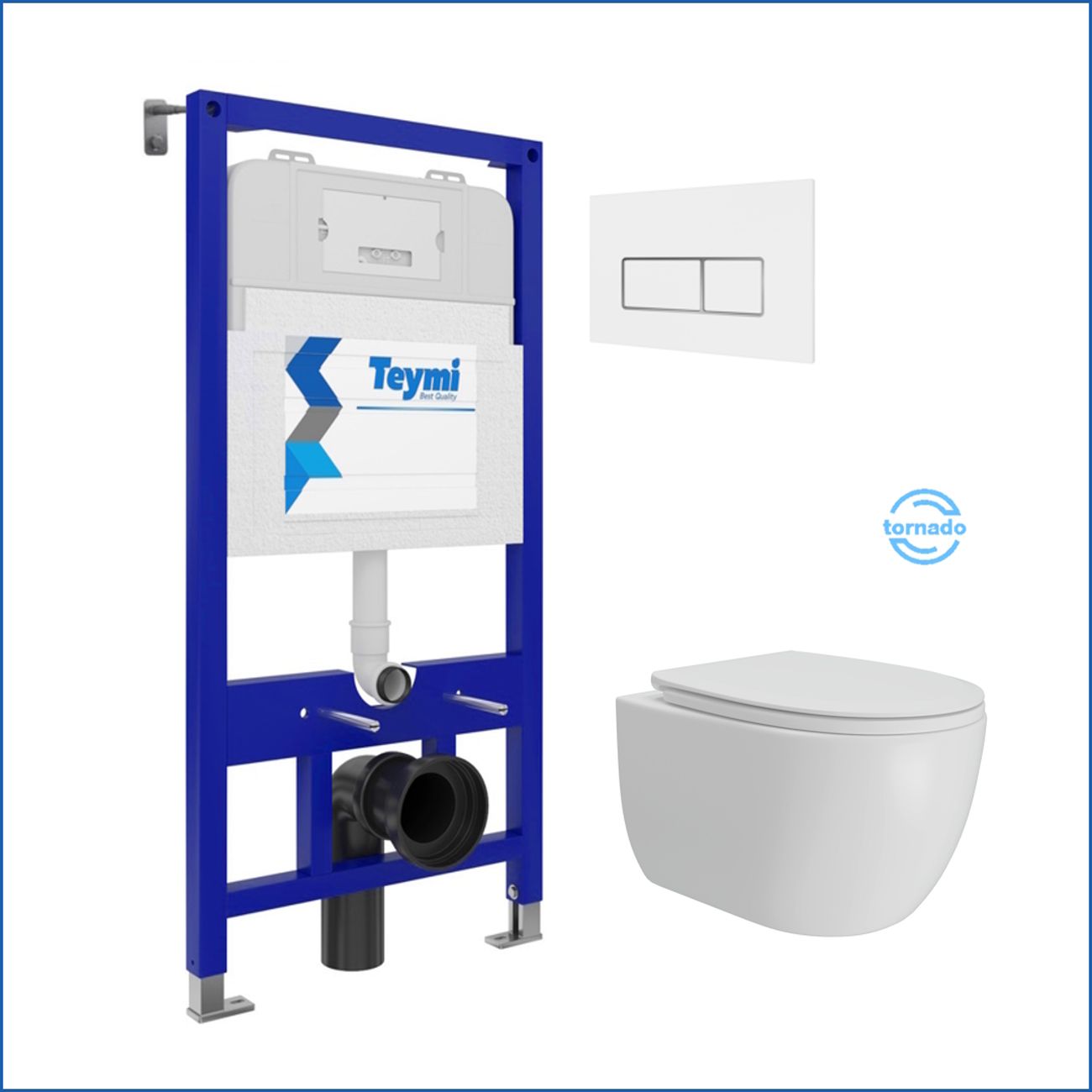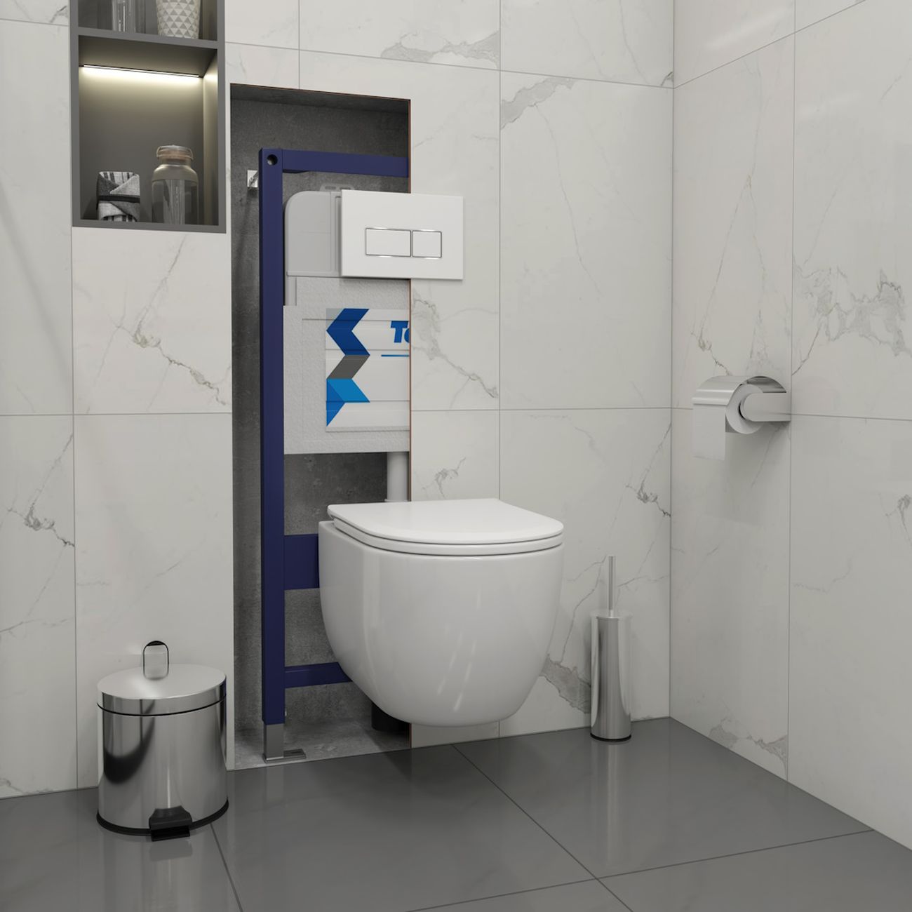 Комплект «Готовое решение» для установки инсталляции с подвесным унитазом включает: -- инсталляция TEYMI AINA 52 T70011 – монтажная рама из стального профиля толщиной 1.5 мм увеличенной ширины 52,5 см с дополнительными вертикальными усиливающими стойками, что позволяет выдерживать нагрузки до 400 кг; -- цельнолитой бачок скрытого монтажа; -- клавиша смыва TEYMI HELMI T70206, цвет БЕЛЫЙ ГЛЯНЦЕВЫЙ, ОКАНТОВКА ХРОМ; -- унитаз подвесной TEYMI Lori Vortex T40502; -- быстросъёмное сиденье с микролифтом; -- полный комплект арматуры для монтажа, включающий в себя уплотнительные кольца и манжеты, трубу смыва, фановый отвод с удлинителем, защитный кожух ревизионного окна с крепежной рамкой, закрывающей панелью и крышкой; -- полный комплект крепежа для установки, а именно: крепеж к стене, шпильки для унитаза, крепежная рамка, соединительные шпильки, толкатели; -- инструкция по установке и обслуживанию. Преимущества комплекта «Готовое решение» для установки инсталляции с подвесным унитазом: -- полная (максимальная) комплектация для установки - больше ничего докупать не придётся; -- все составляющие комплекта идеально подходят друг к другу; -- взаимозаменяемость комплектующих; -- рама покрыта суперпрочной порошковой краской с антикоррозионными свойствами; -- высота рамы может регулироваться с ходом до 20 см с помощью ножек, изготовленных из оцинкованной стали; -- сливной бачок скрытого монтажа изготовлен из современных полимерных материалов и является цельнолитым (бесшовным), что позволяет ему работать без протечек в течение всего периода эксплуатации; -- лёгкость обслуживания сливного бачка достигается благодаря удобному ревизионному окну, скрытому за клавишей смыва; -- клавиша смыва имеет две кнопки и работает в режиме ЭКОНОМ / ПОЛНЫЙ (объёмы смыва 3 / 6 литров); -- гарантия на весь комплект составляет 10 лет, а рама прослужит все 50. Уважаемые покупатели, обращаем ваше внимание на то, что система инсталляции TEYMI AINA 52 может быть также укомплектована другими клавишами смыва или подвесными унитазами от бренда TEYMI (вы можете найти их на этом сайте по указанным артикулам). Предлагаем вам рассмотреть варианты сочетания со следующими клавишами: : HELMI хром T70202CH : HELMI черная T70203BM : HELMI белая T70018WM : LINA хром T70102CH : LINA черная T70103BM : LINA белая T70019WM : AINA хром T70012CH : AINA черная T70013BM : AINA белая T70020WM : KATI хром T70701CH : KATI черная T70702BM : KATI белая T70021WM : ELLIE хром T70022CH : ELLIE черная T70023BM : ELLIE белая T70024WM Также просим обратить взгляд на наши лучшие безободковые подвесные унитазы: : SOLLI T40201 : LINA S T40102 : HELMI S T40302 : HELMI VORTEX T40303 : IVA T40601 : ELLIE T40802 : LINA MEDIA T40105 : KATI T40701 : HANNA PRO T40901 : HELMI S BLACK T40302MB : VITRA PRO T40806 : VITRA T40804 : DEMI T40208 : LINA VORTEX T40110 : RITTA T40809 : LINA PRO T40106 : LINA S BLACK T40111