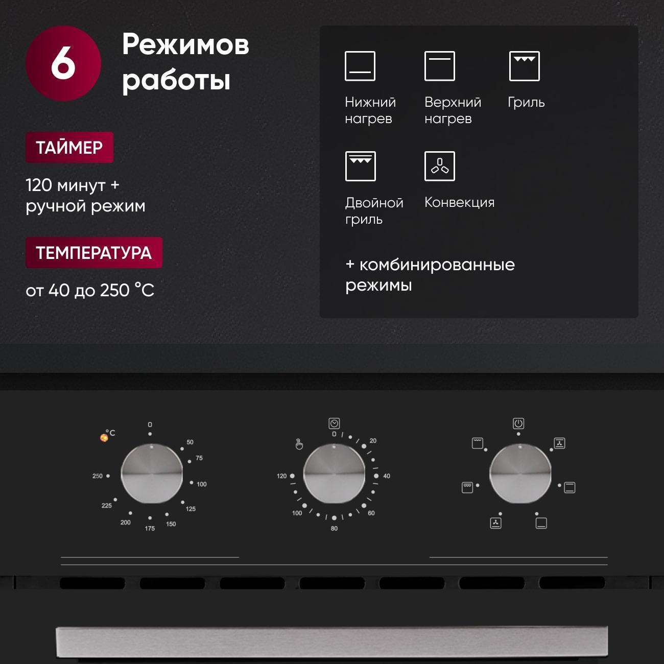 У духового шкафа куча режимов готовки - это прям удобно. Так же поверхности не сильно маркие, легко отмываются любым средством.
