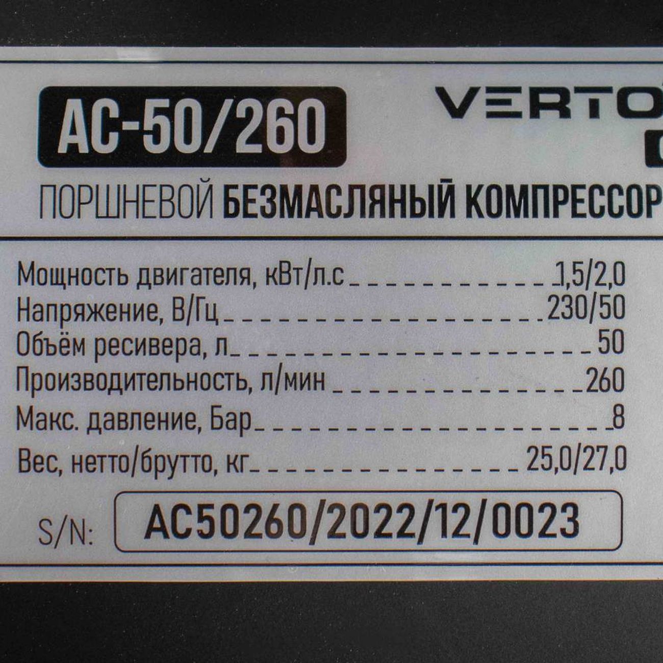 Вы можете купить Компрессор безмасляный VERTON Air AC-50/260 (230/50В/Гц,б/масл,260л/мин,V50л,макс. дав.8 бар,мощн.1,5 кВт,част.вращ.двиг.2850 об/мин,рапид/) в магазинах М.Видео по доступной цене. Компрессор безмасляный VERTON Air AC-50/260 (230/50В/Гц,б/масл,260л/мин,V50л,макс. дав.8 бар,мощн.1,5 кВт,част.вращ.двиг.2850 об/мин,рапид/): подробное описание, фото и отзывы реальных покупателей, характеристики, возможность скачать инструкции и подобрать аксессуары.