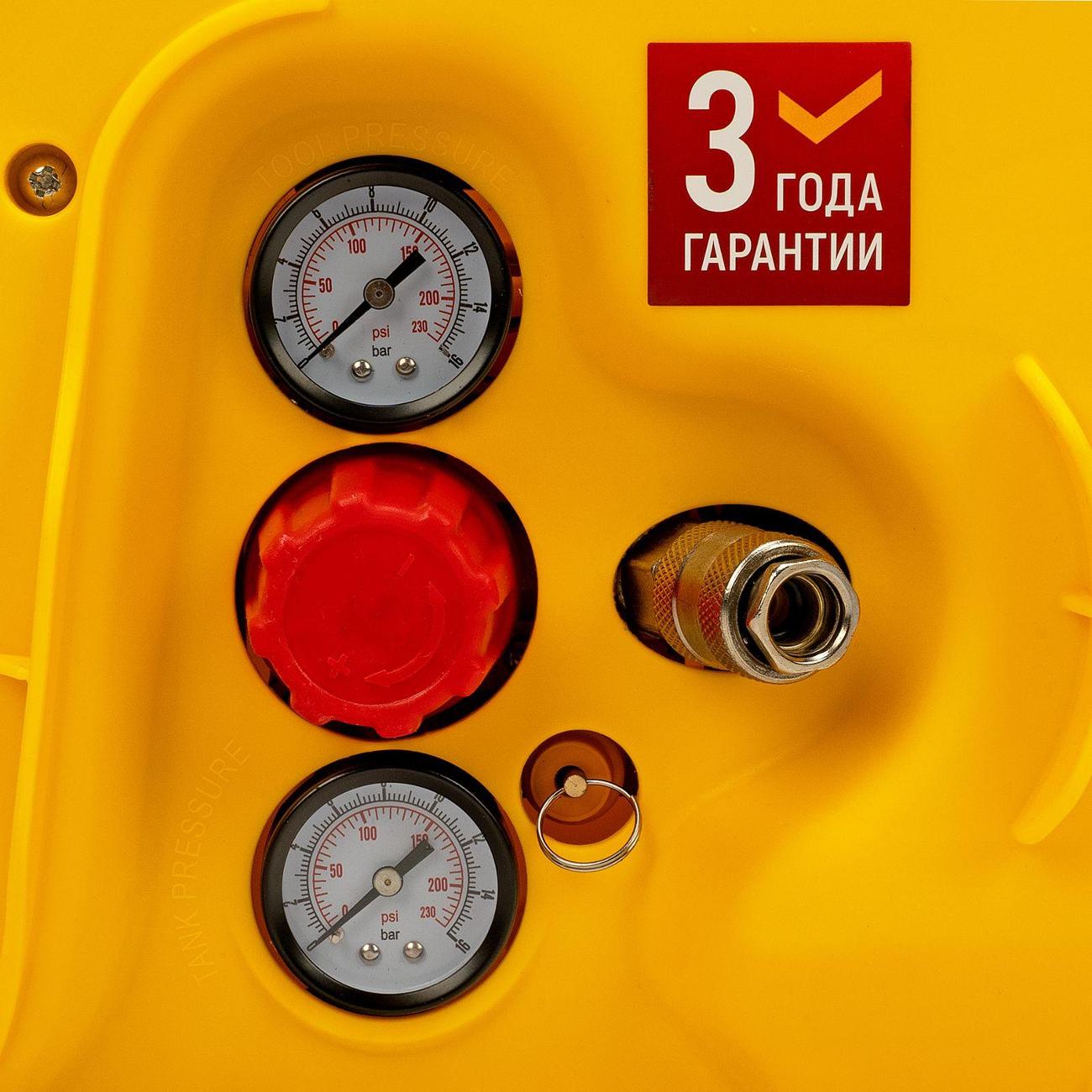 Качество материалов и сборки на очень высоком уровне, поэтому я уверен в долговечности этого товара. Мощный, надежный, компактный компрессор. Набор аксессуаров сразу позволяет начать работу. Рекомендую всем, кто занимается ремонтом или строительством.