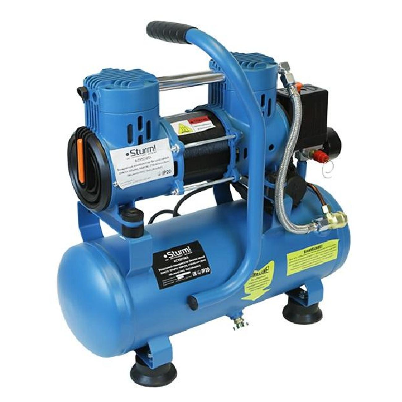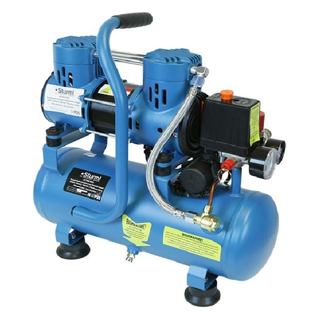 Компрессор Sturm! AC93210OL работает на базе двигателя с двумя цилиндрами и увеличенным количеством оборотов. Устройство без проблем запускается даже в морозную погоду, так как не требует использования масла, меняющего консистенцию при минусовых температурах. В процессе работы компрессор издает минимум шума.