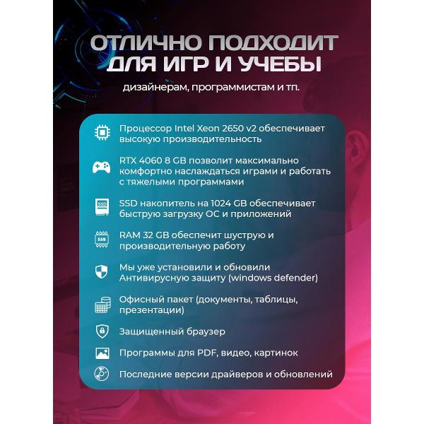 Вы можете купить Компьютер БиГ! Комп White Dragon 4060 W11 V2 32GB SSD1TB Plus в магазинах М.Видео по доступной цене. Компьютер БиГ! Комп White Dragon 4060 W11 V2 32GB SSD1TB Plus: подробное описание, фото и отзывы реальных покупателей, характеристики, возможность скачать инструкции и подобрать аксессуары.