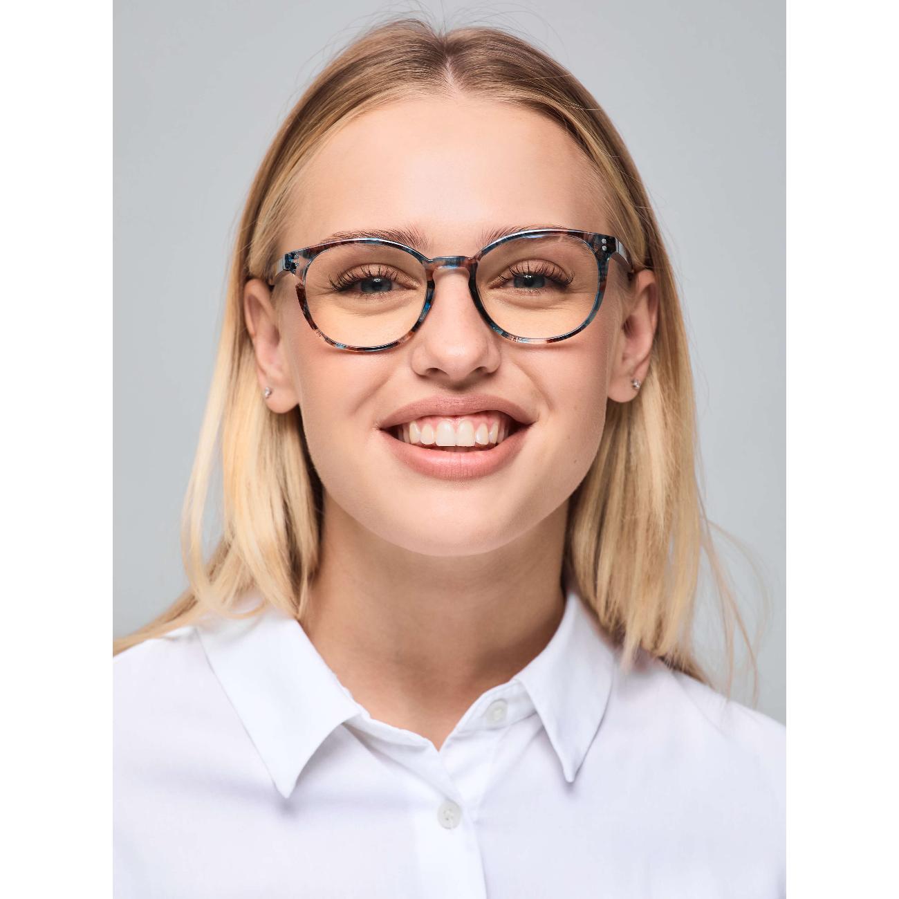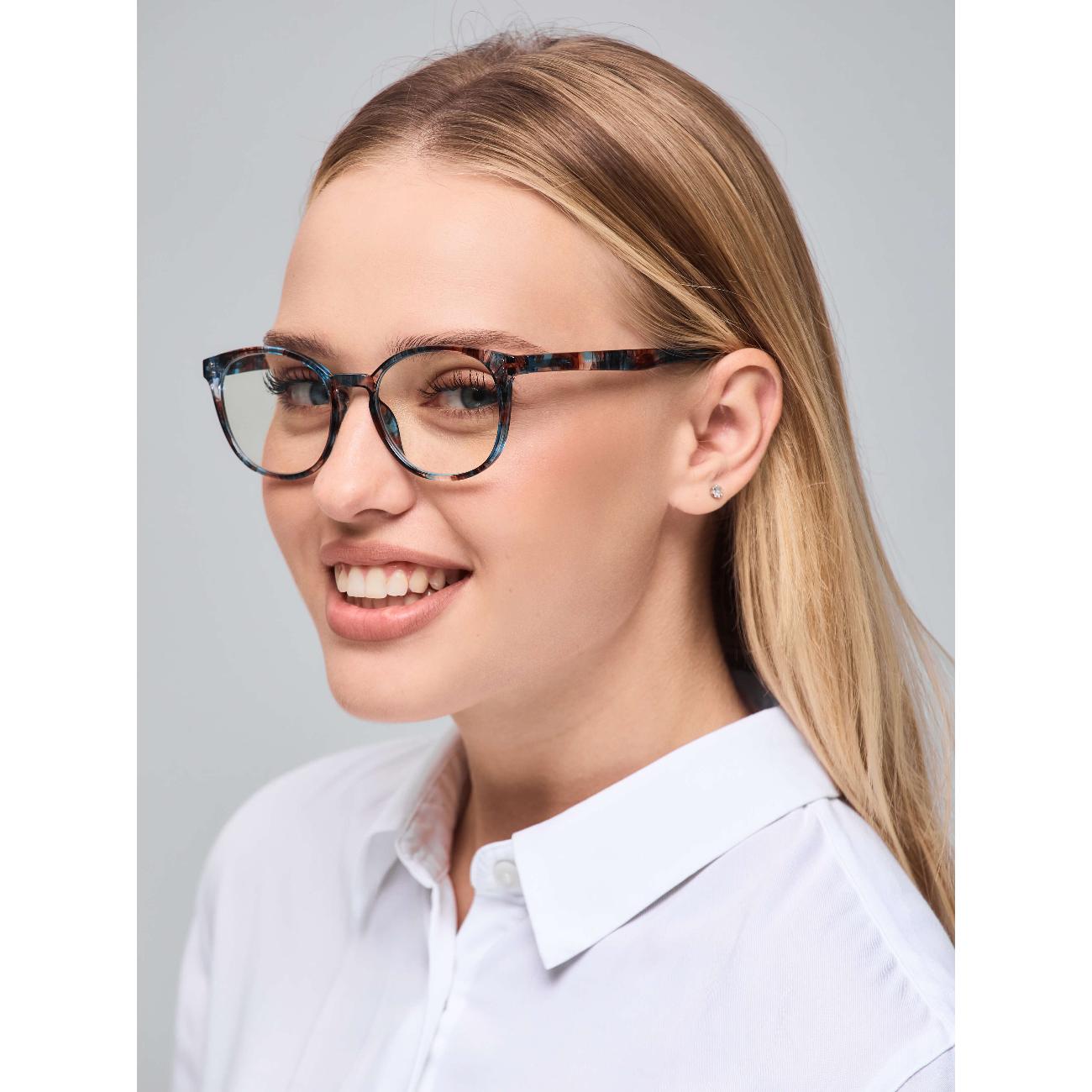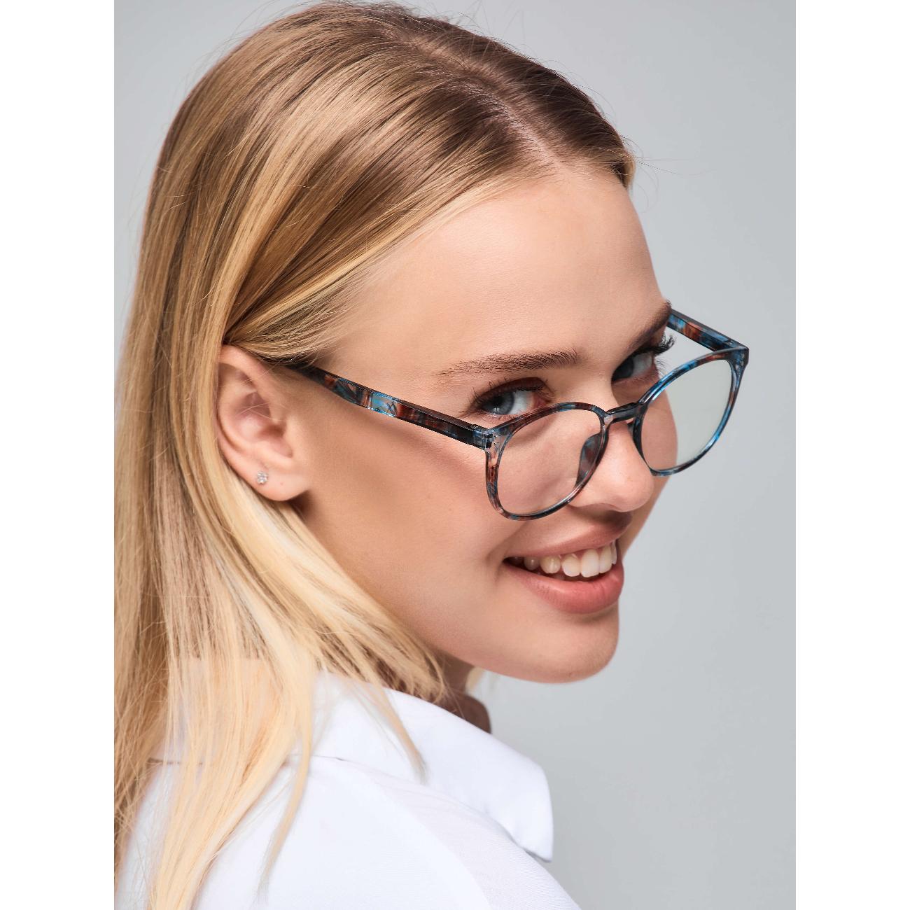 Хорошие очки, линзы прозрачные, из поликарбоната, оправа матовая синего цвета, из прочного полимера, приятная на ощупь, сидят отлично, не спадают. Доставка в коробочке с прозрачным чехлом. Очки своих денег стоят, исходя из эффекта. Недостатки однозначно перекрываются эффектом от их ношения и конечно ценовой категорией. Пока посидела за устройством час и полегче действительно стало. Но время даст более уверенный результат. Рекомендую.