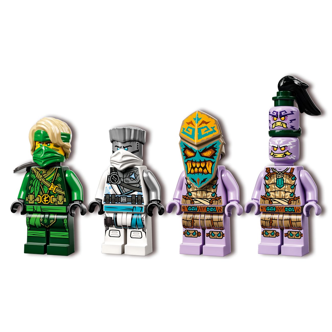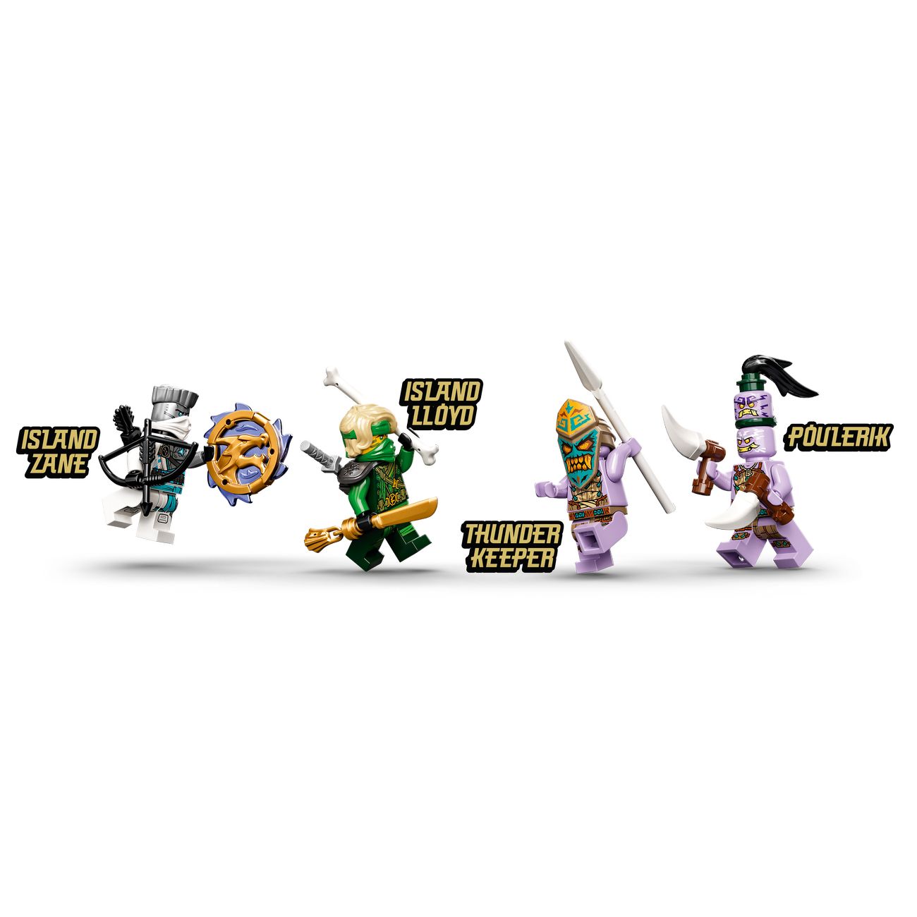 Ллойд верхом на драконе с подвижными ногами, крыльями и хвостом атакует своих врагов, а Зейн на сёрфборде с шутером торопится к нему присоединиться. ПулЭрик и Хранитель грома отбиваются от нападающих ниндзя, используя разнообразное оружие. Все четыре фигурки входят в комплект.
