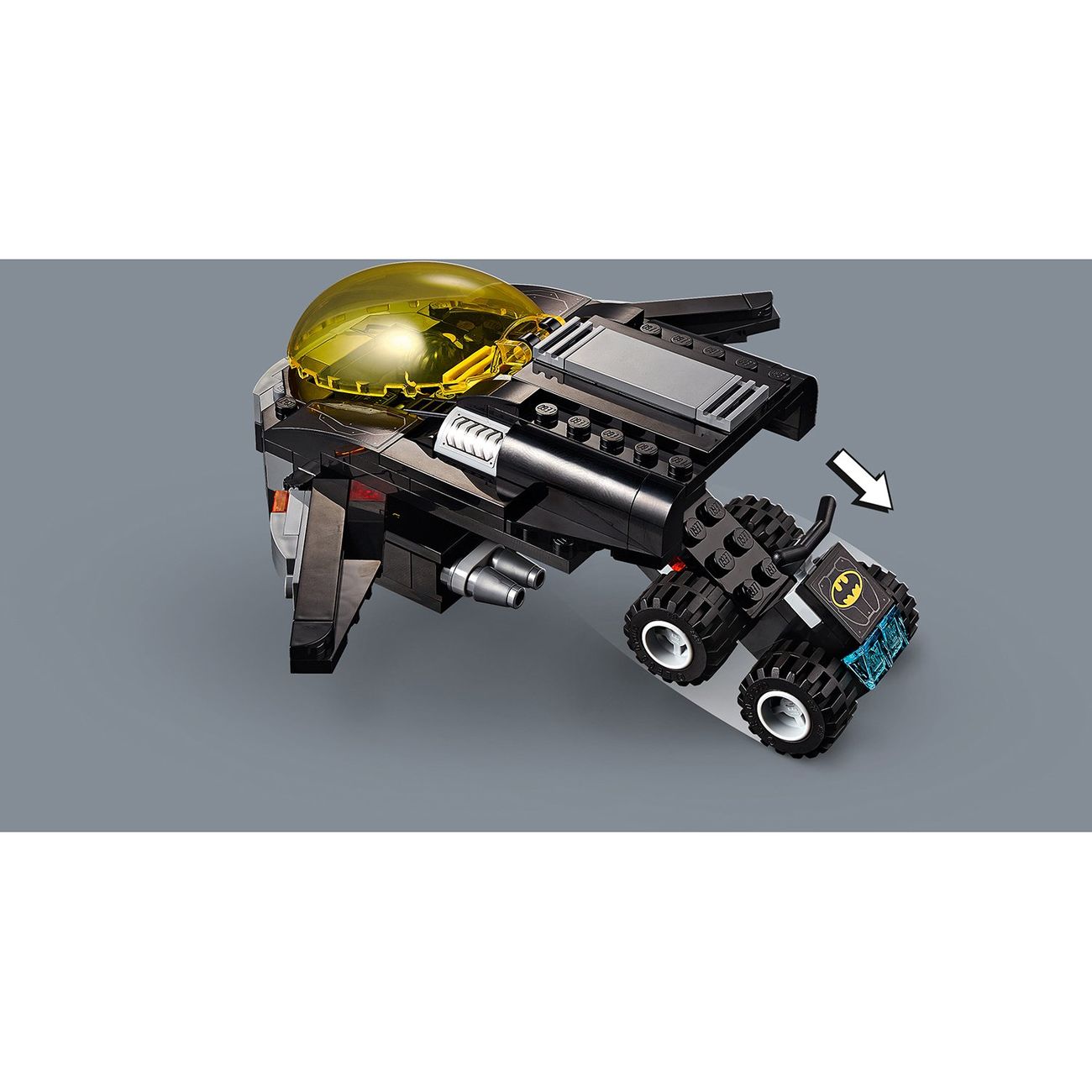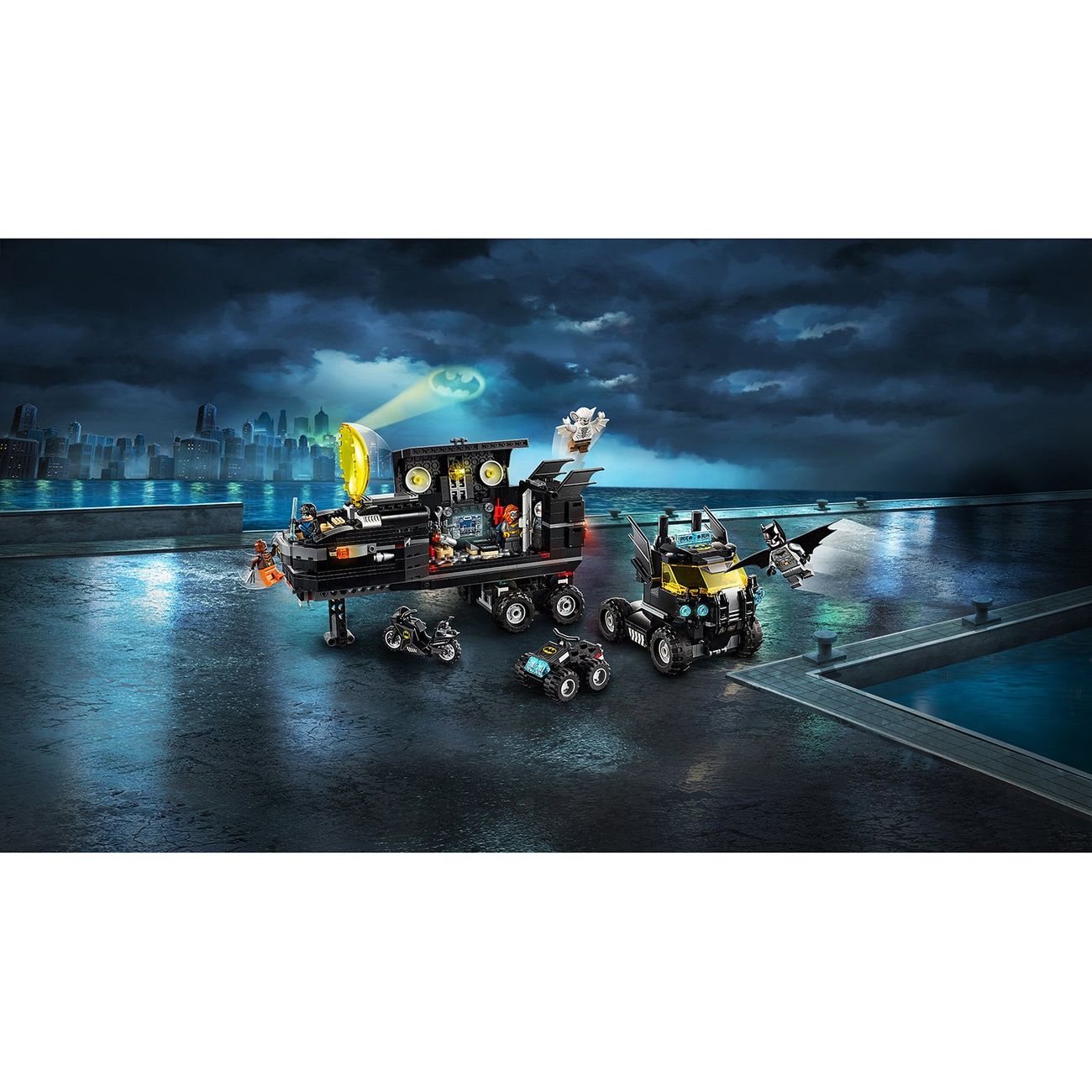 Модель представлена сразу пятью транспортными средствами: грузовиком с прицепом, реактивным самолётом, квадроциклом, мотобайком и акваскутером. Множество скрытых функций позволяют положительным героям успешно гоняться за суперзлодеями (все фигурки в наборе). Для последних, кстати, даже есть камера, которую они могут взорвать, чтобы сбежать.