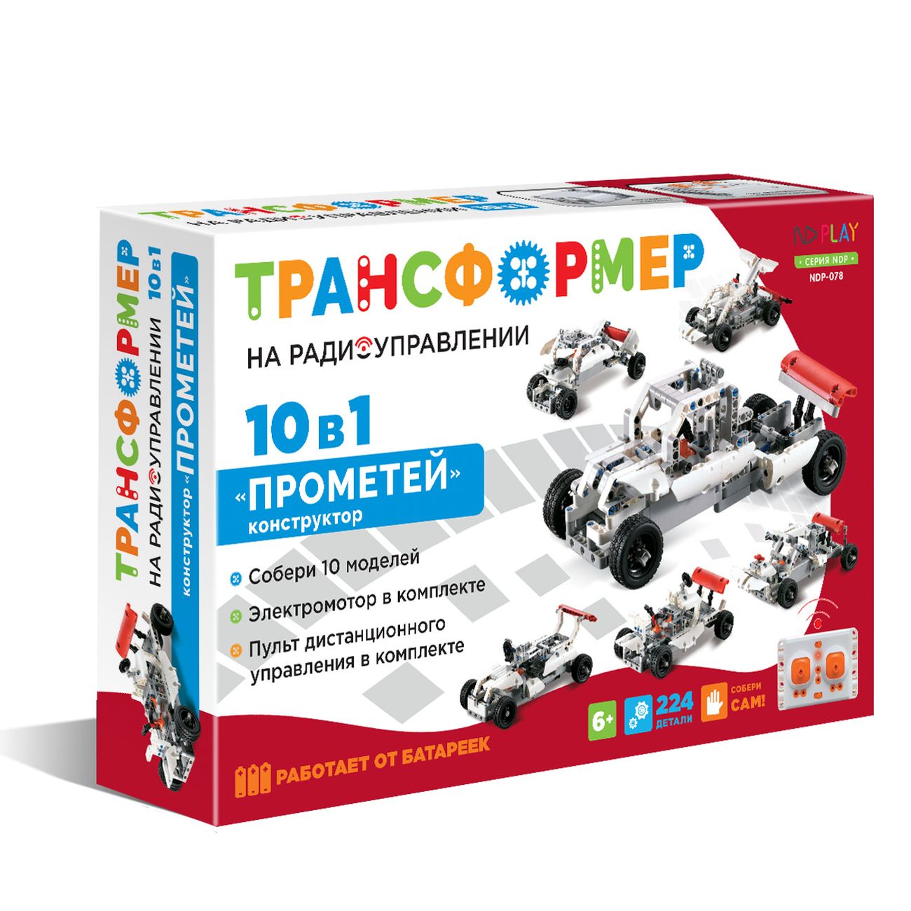 Детский конструктор ND Play «Прометей» 10-в-1 — это игрушка на солнечной батарее. Элементы конструктора сделаны из пластика. Они соединяются между собой без дополнительных инструментов, скотча и клея. Конструктор можно заряжать от солнечной энергии или от батареек. Изделие предназначено для детей в возрасте от 6 лет. Конструктор упакован в картонную коробку.