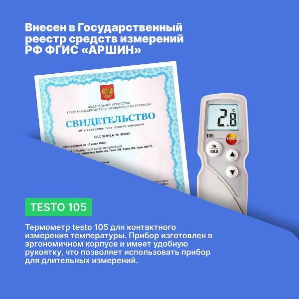 Вы можете купить Контактный термометр Testo 105 для замороженных продуктов с поверкой в магазинах М.Видео по доступной цене. Контактный термометр Testo 105 для замороженных продуктов с поверкой: подробное описание, фото и отзывы реальных покупателей, характеристики, возможность скачать инструкции и подобрать аксессуары.