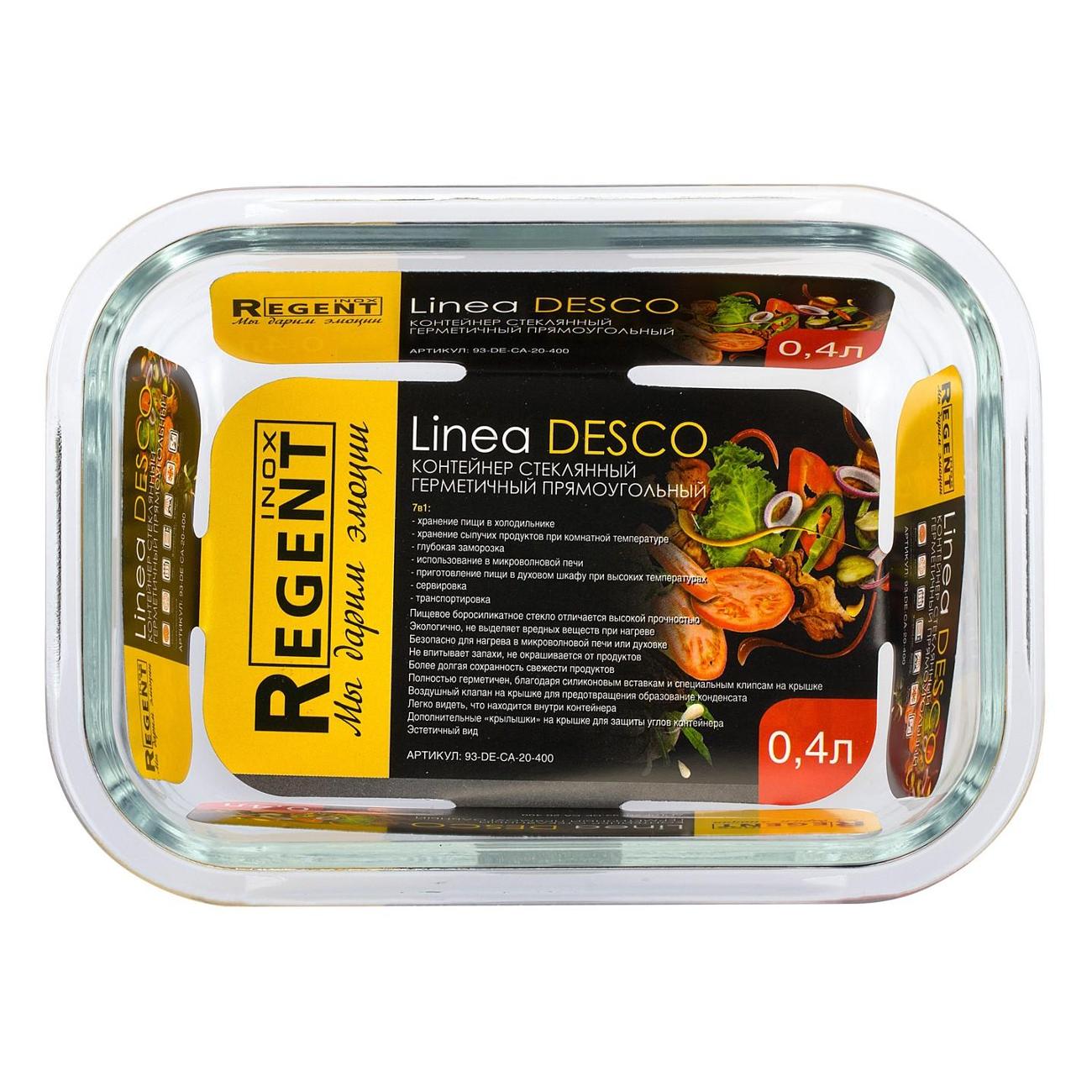 Вы можете купить Контейнер для продуктов стеклянный 0.4л. REGENT inox Desco в магазинах М.Видео по доступной цене. Контейнер для продуктов стеклянный 0.4л. REGENT inox Desco: подробное описание, фото и отзывы реальных покупателей, характеристики, возможность скачать инструкции и подобрать аксессуары.
