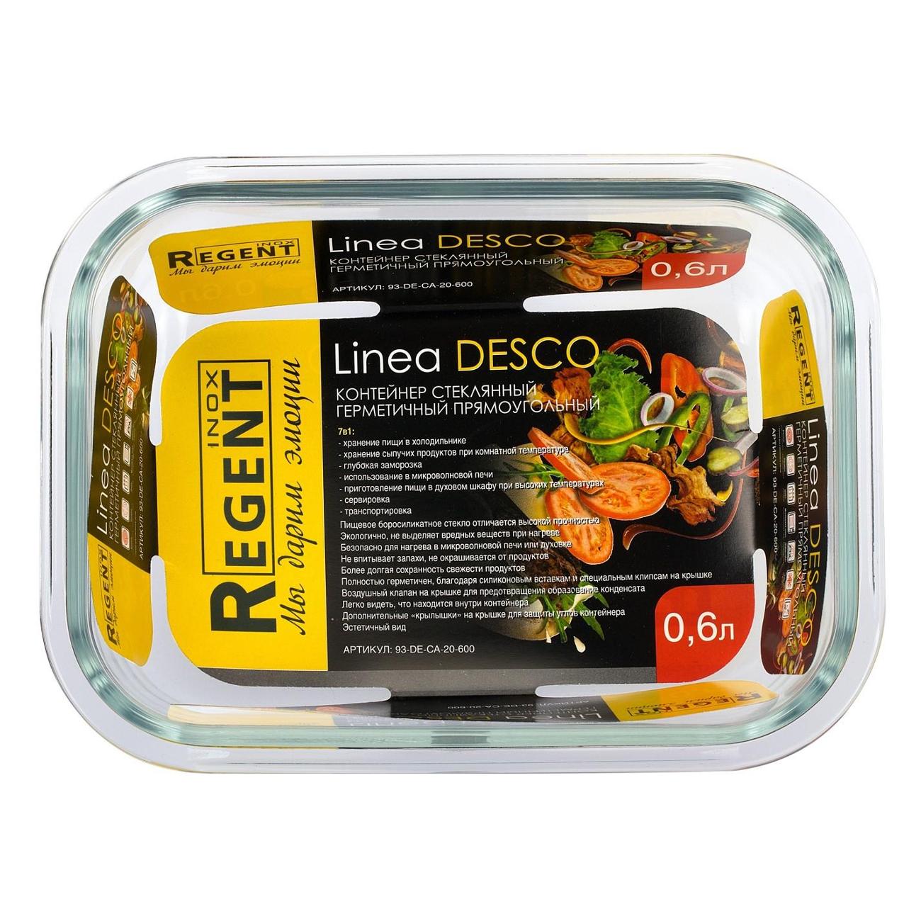 Вы можете купить Контейнер для продуктов стеклянный 0.6л REGENT inox Desco в магазинах М.Видео по доступной цене. Контейнер для продуктов стеклянный 0.6л REGENT inox Desco: подробное описание, фото и отзывы реальных покупателей, характеристики, возможность скачать инструкции и подобрать аксессуары.