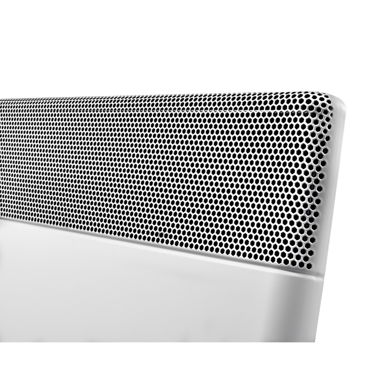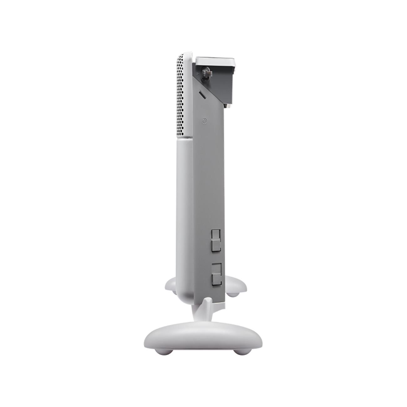 Потребляемая мощность составляет 2 кВт. Время нагрева — 10-20 секунд. Устройство оснащено нагревательным элементом Hedgehog, защищено от перегрева и выключается при опрокидывании. Соединение с розеткой проводят посредством кабеля длиной 1,2 м. Материал изготовления корпуса — сталь. Цвет — белый. Габариты — 59х13х67 см. Вес — 5,705 кг.
