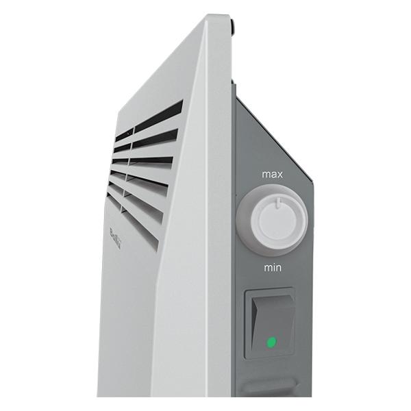Модель рассчитана на обогрев помещения площадью до 25 м². Переключателями на металлическом корпусе можно установить один из двух температурных режимов, изменяя показатели в пределах от 5°С до 35°С.