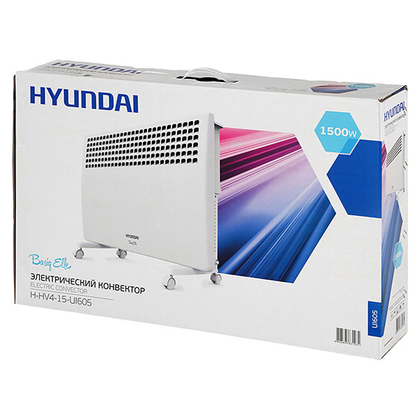 Конвектор Hyundai H-HV4-15-UI605 входит в серию Basig Elle. Он подходит для использования дома и в офисе и способен обеспечить тепло в помещении площадью до 18 кв. м. Прибор оборудован колёсиками, поэтому его легко можно перемещать из комнаты в комнату.