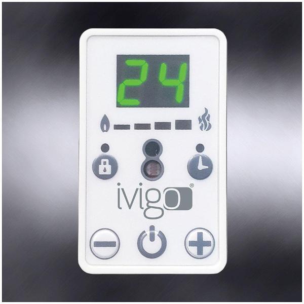 Конвектор iVigo EPK4570E15 White устанавливается на пол или на стену. Устройство подходит для обогрева комнат площадью до 15 м². Основа конструкции — монолитный нагревательный элемент мощностью 1500 Вт. В корпус интегрирован температурный датчик, отслеживающий температуру в комнате, и таймер. Показатель выводится на дисплей.