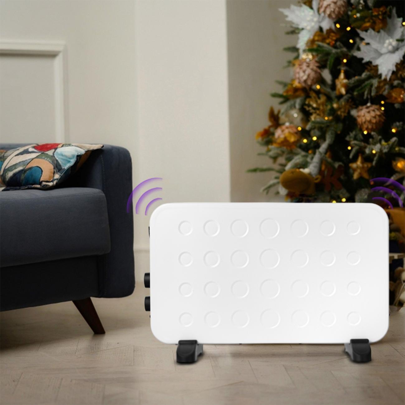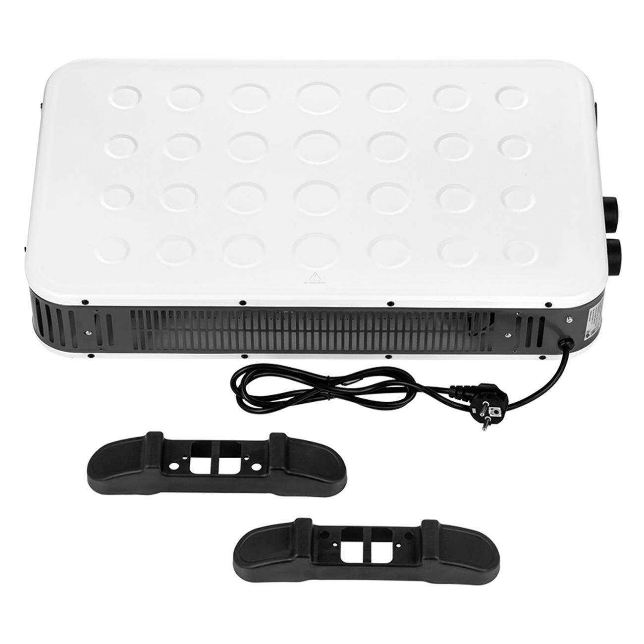 О запуске оповестит интегрированный световой индикатор. В случае перегрева прибор автоматически отключится. Спираль скрыта за стальным корпусом. Боковые элементы и ножки изготовлены из высокопрочного и износостойкого пластика. Габариты изделия равны 38,5х61,8х26 см. Вес — 2,85 кг. Возможна как настенная установка, так и напольный монтаж. Две широкие опоры обеспечивают устойчивость. Подставки фиксируются за счет четырех винтов, входящих в комплектацию.