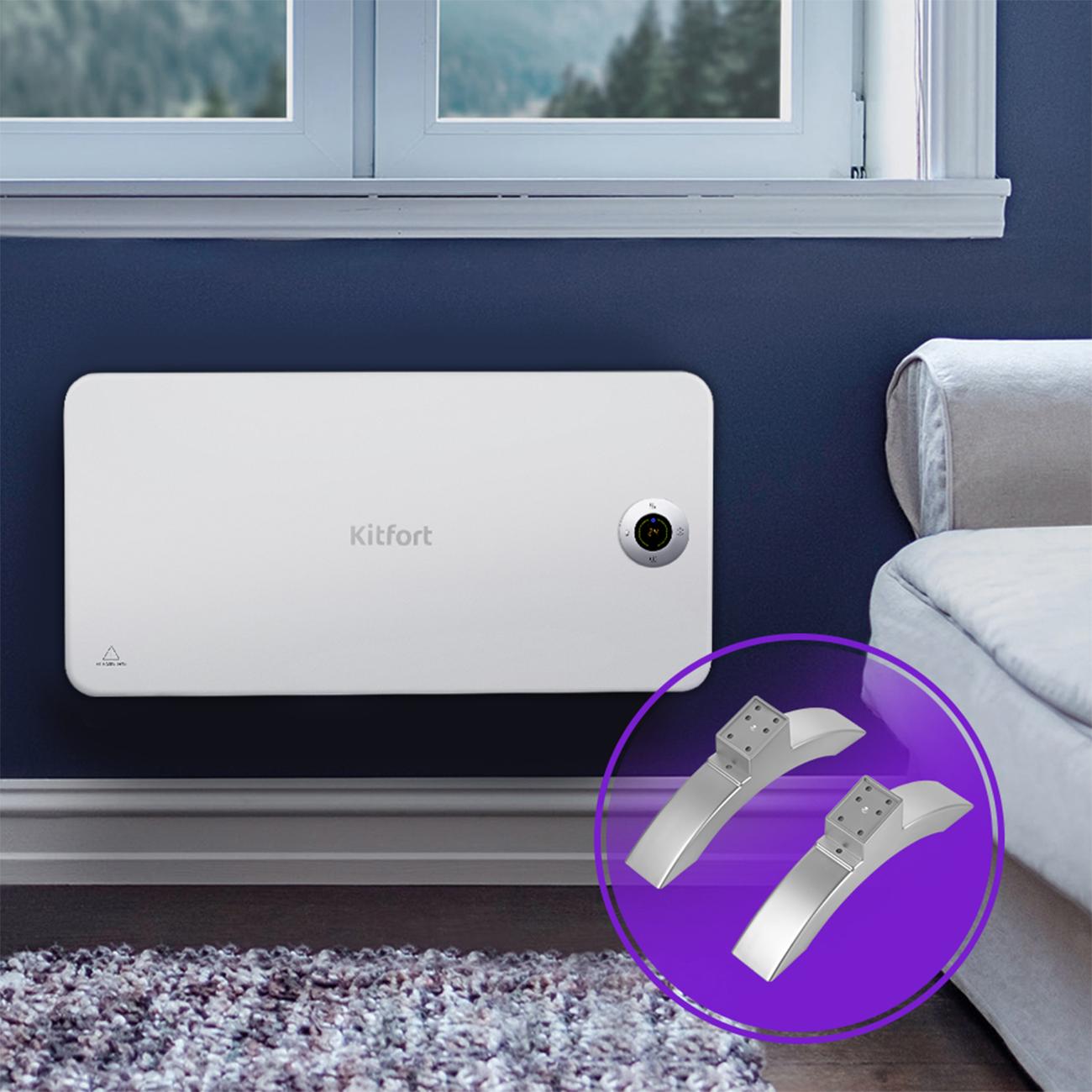 Конвектор Kitfort КТ-2708 подходит для помещений площадью до 15 м². Модель оснащена сенсорной панелью управления с системой индикации. Также возможна настройка через мобильное приложение Smart Life. Доступны два режима работы с максимальной мощностью 1,5 кВт, 36 вариантов температуры в диапазоне от 5°C до 40°C и таймер до 24 часов. Кнопка запуска расположена сбоку.